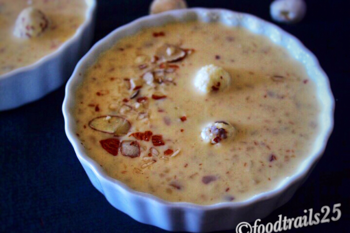 Makhane ki Kheer...pudding prepared with Makhane/Fox nuts in thickened milk made especially during fasting festivals/days like Navratri, Shivratri, Krishna Janmashtami.