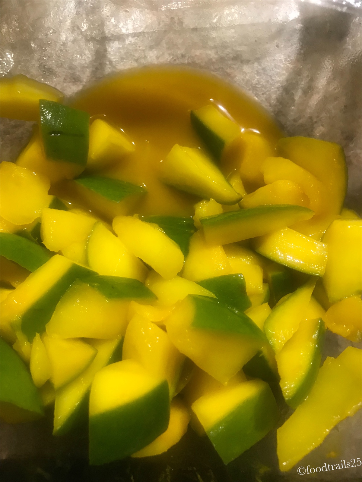 - Squeeze out the water from mango pieces, keep in a separate glass container and refrigerate it.