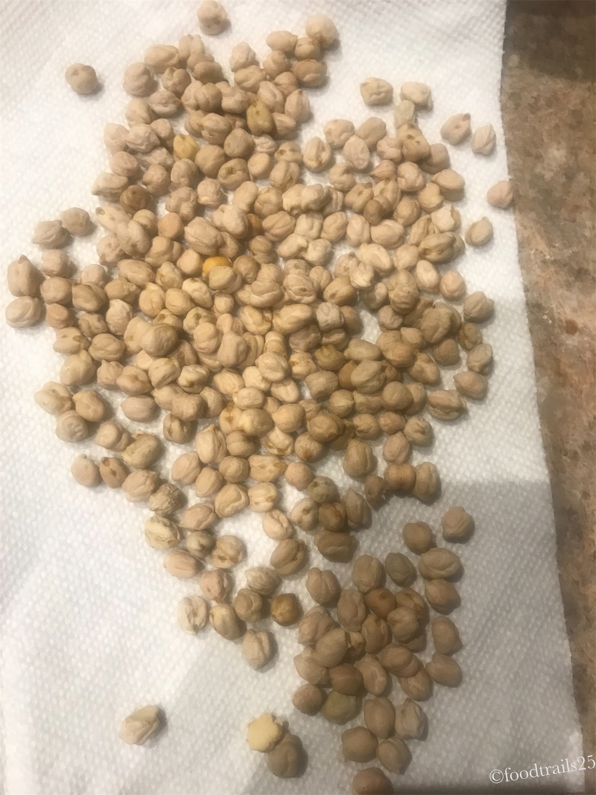 - Meanwhile wash the chickpea pieces and then dry these on a kitchen towel.