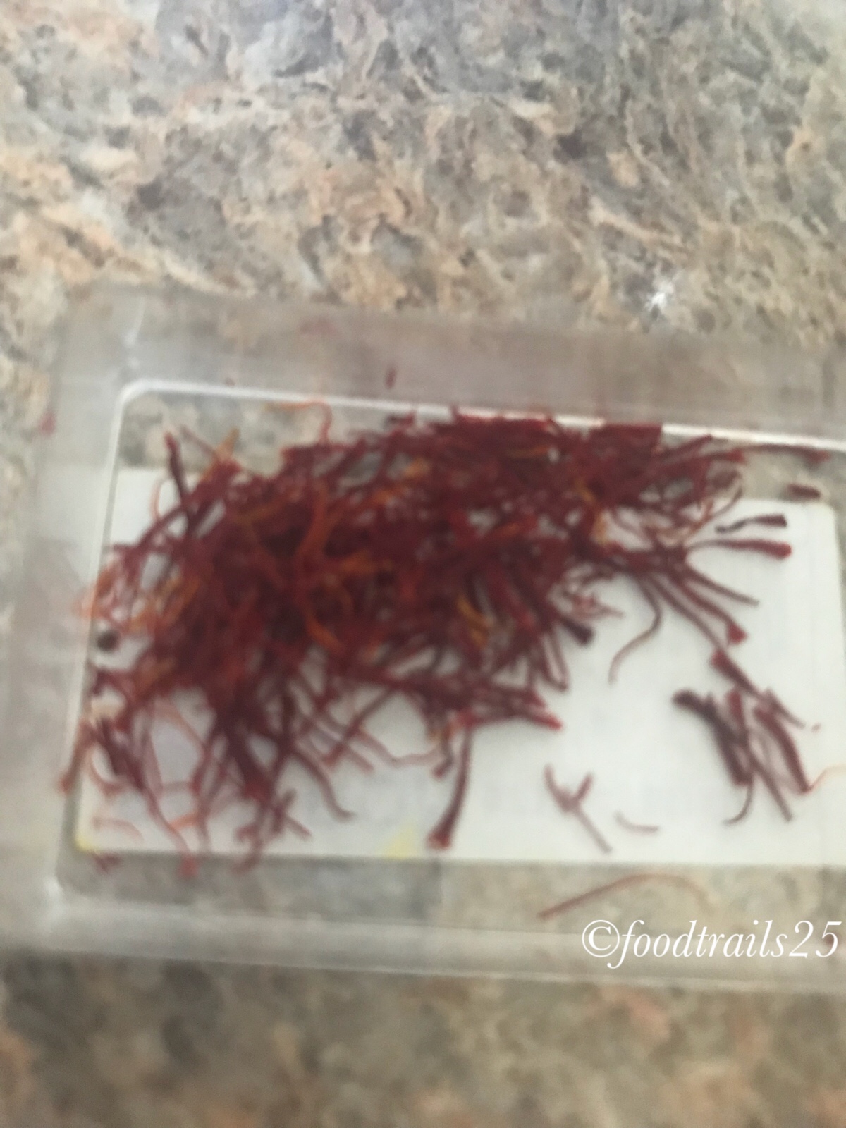 - Put in a blender with sugar, cardamom, saffron and milk and ½ cup water.
