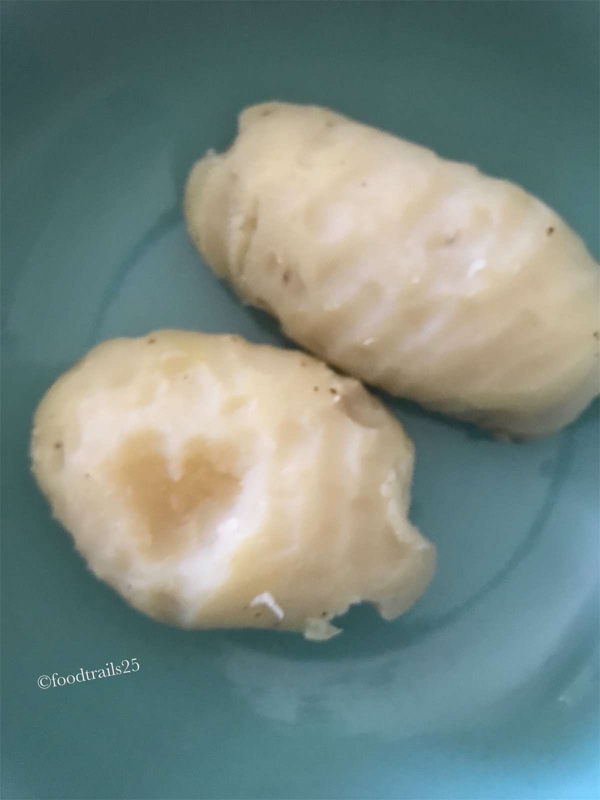 Take medium sized potatoes. Wash them nicely to clean off all the dirt. If potato size is big, cut into half. To speed up the cooking process, I use pressure cooker. You can boil potatoes in open pan too but these take time. One can microwave potatoes too. Will update the methods in a separate post.