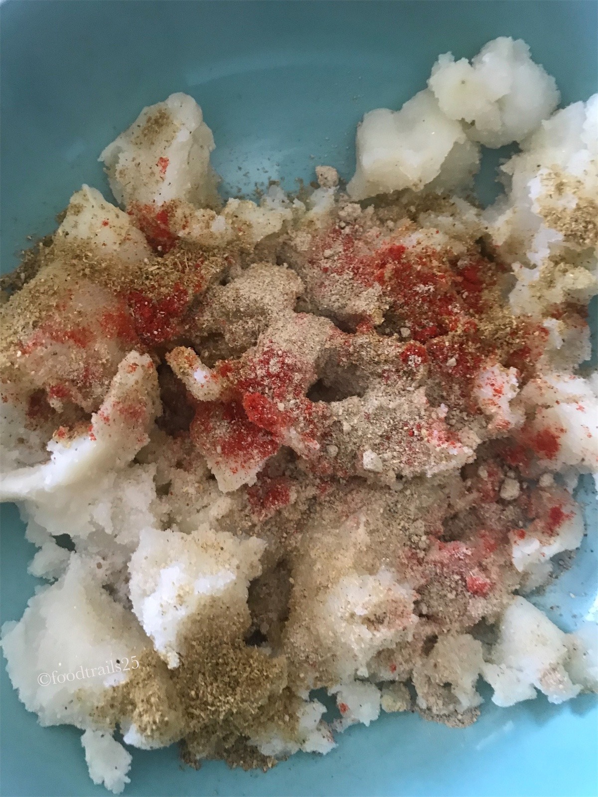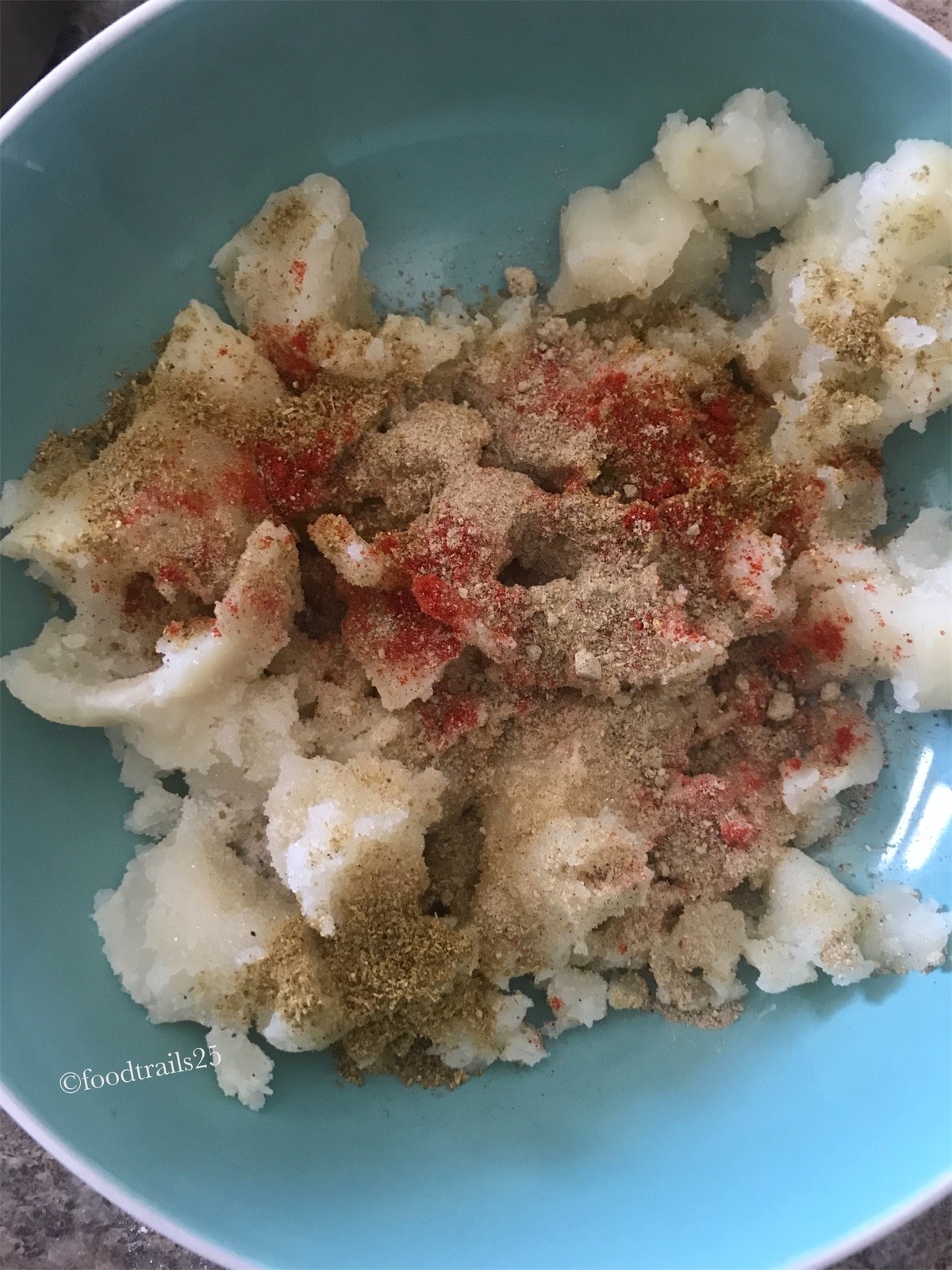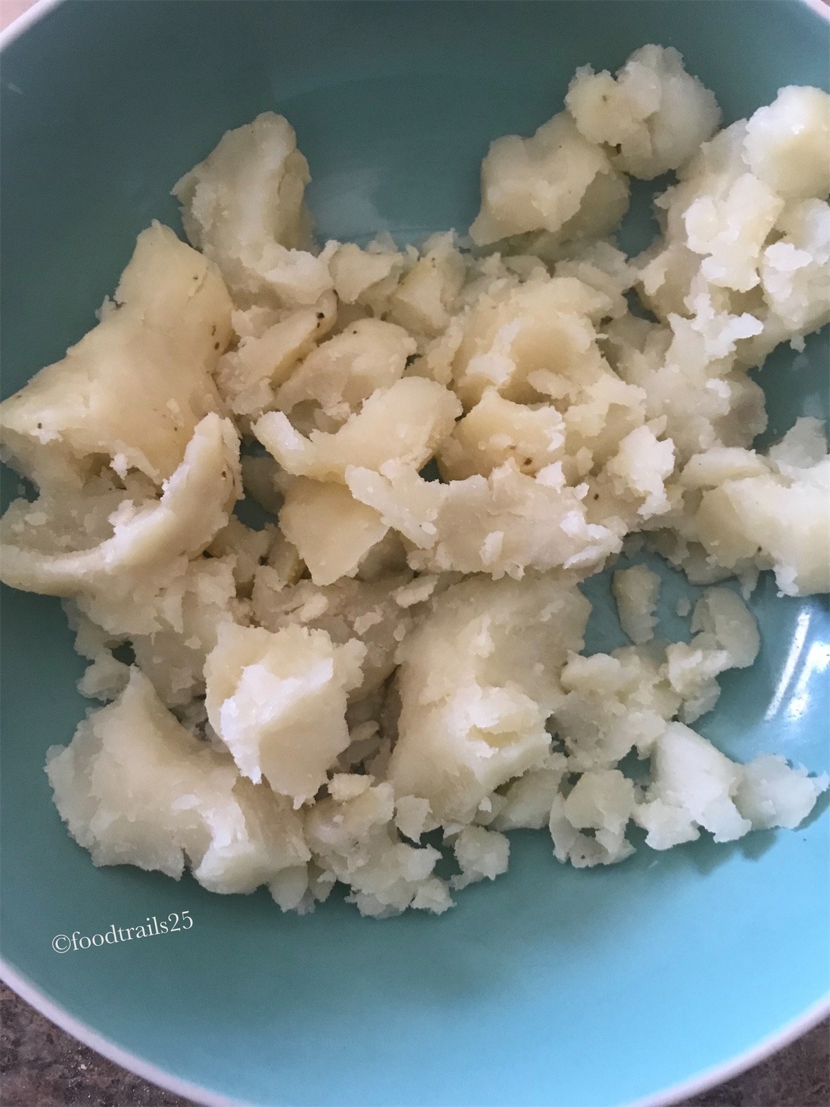 - Boiled potatoes should be cooled completely before mashing and adding spices.