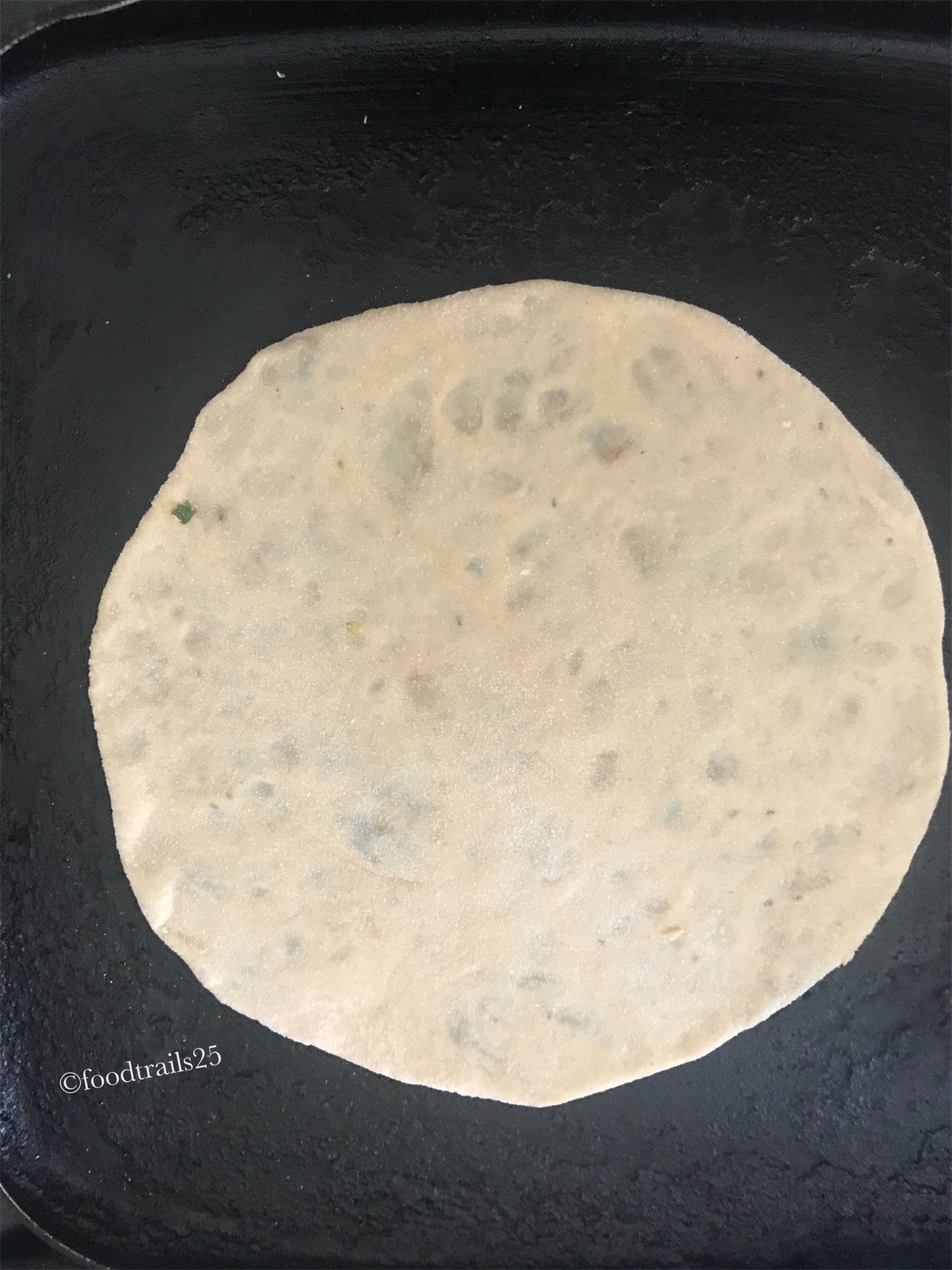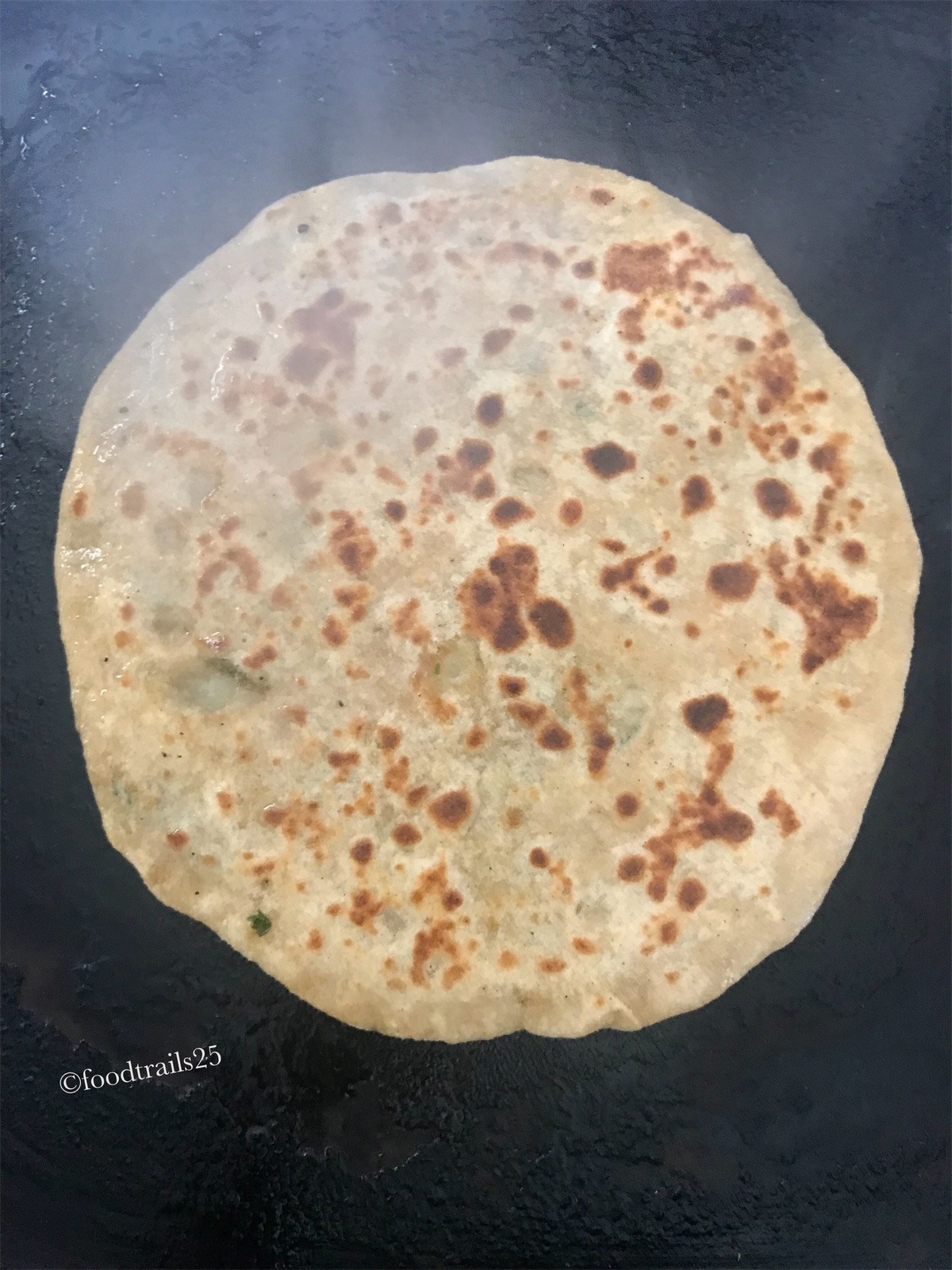 - Griddle should be hot enough to fry paranthas.