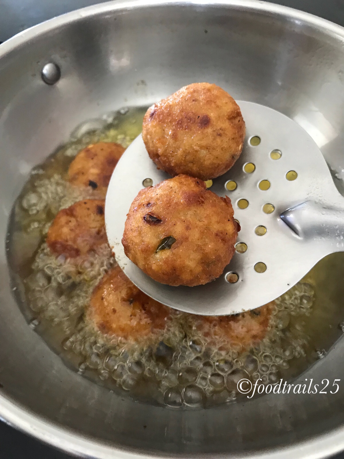 Heat oil in a kadhai/heavy bottomed pan. Fry cutlets in medium hot oil till golden brown.