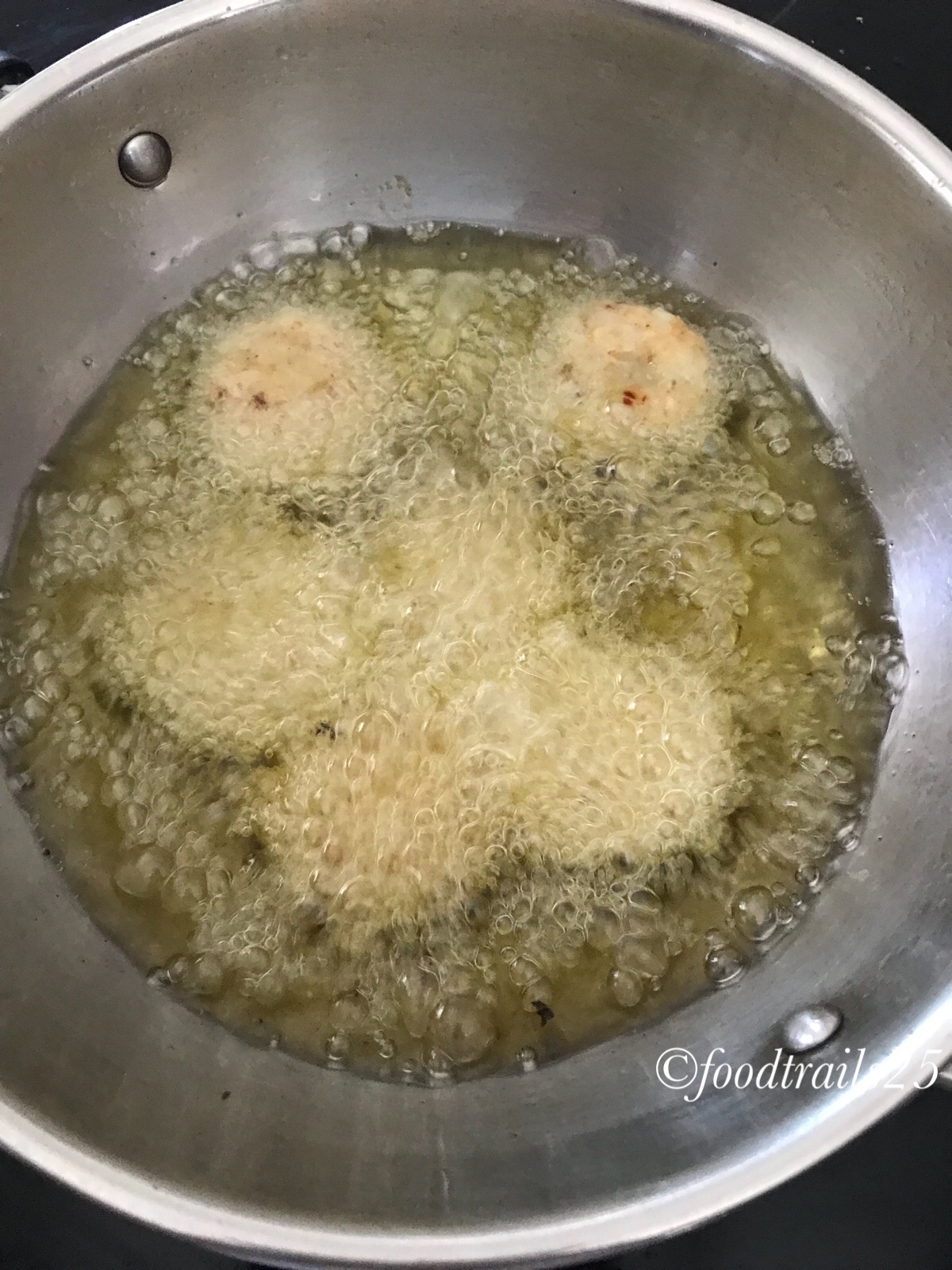 Best enjoyed with ketchup and green chutney, also can be used as patty for a simple no fuss Aloo Tikki burger. These are fried but as very light on the stomach as doesn't absorb oil. For those who want a no-fry option, can pan fry these in form of tikkis.
