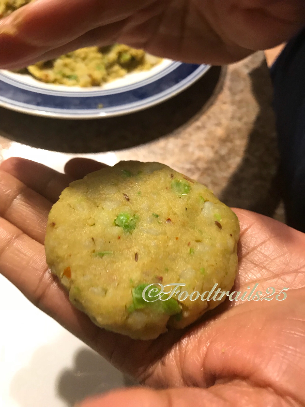- Once the mixture is cooled, take a portion of the mixture, form into patties.