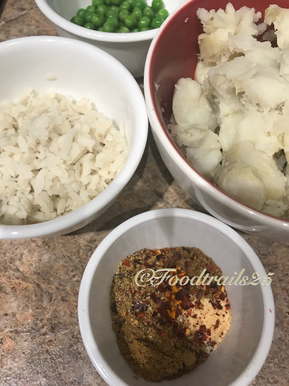 Potatoes, rice flakes(poha), spices. You can use leftover boiled rice also in place of Rice flakes(poha). Mash it along with potatoes.