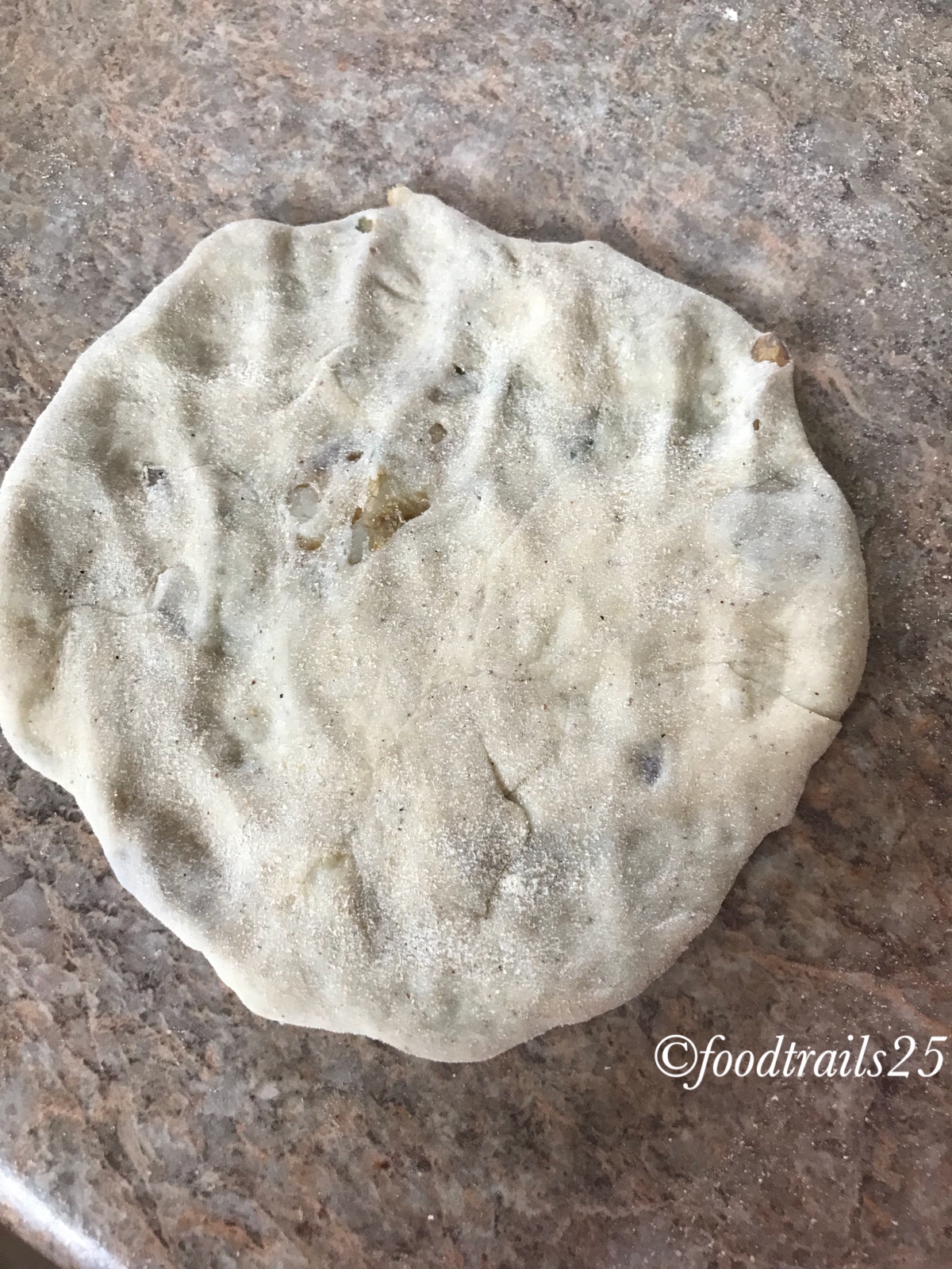 Meanwhile a griddle or tawa, and place the rolled/flattened kulcha on the griddle. (Image missing, will soon be updated)