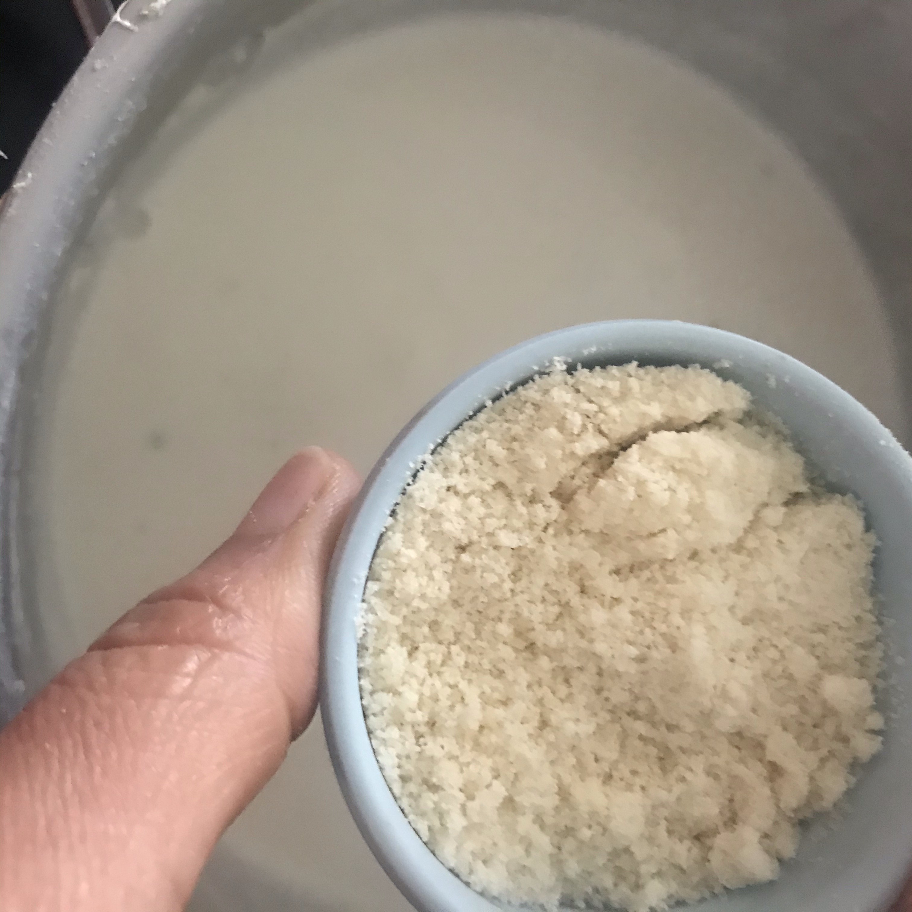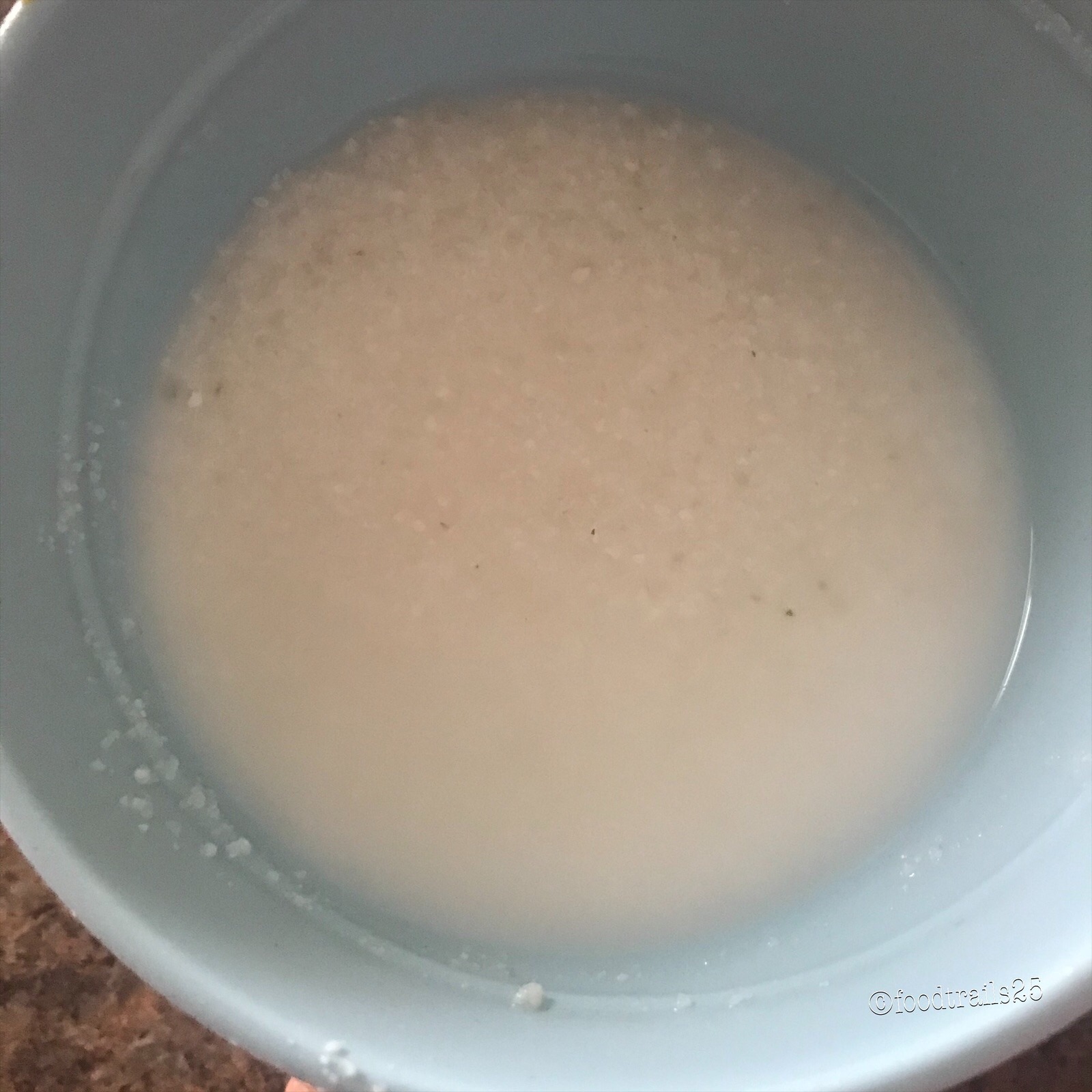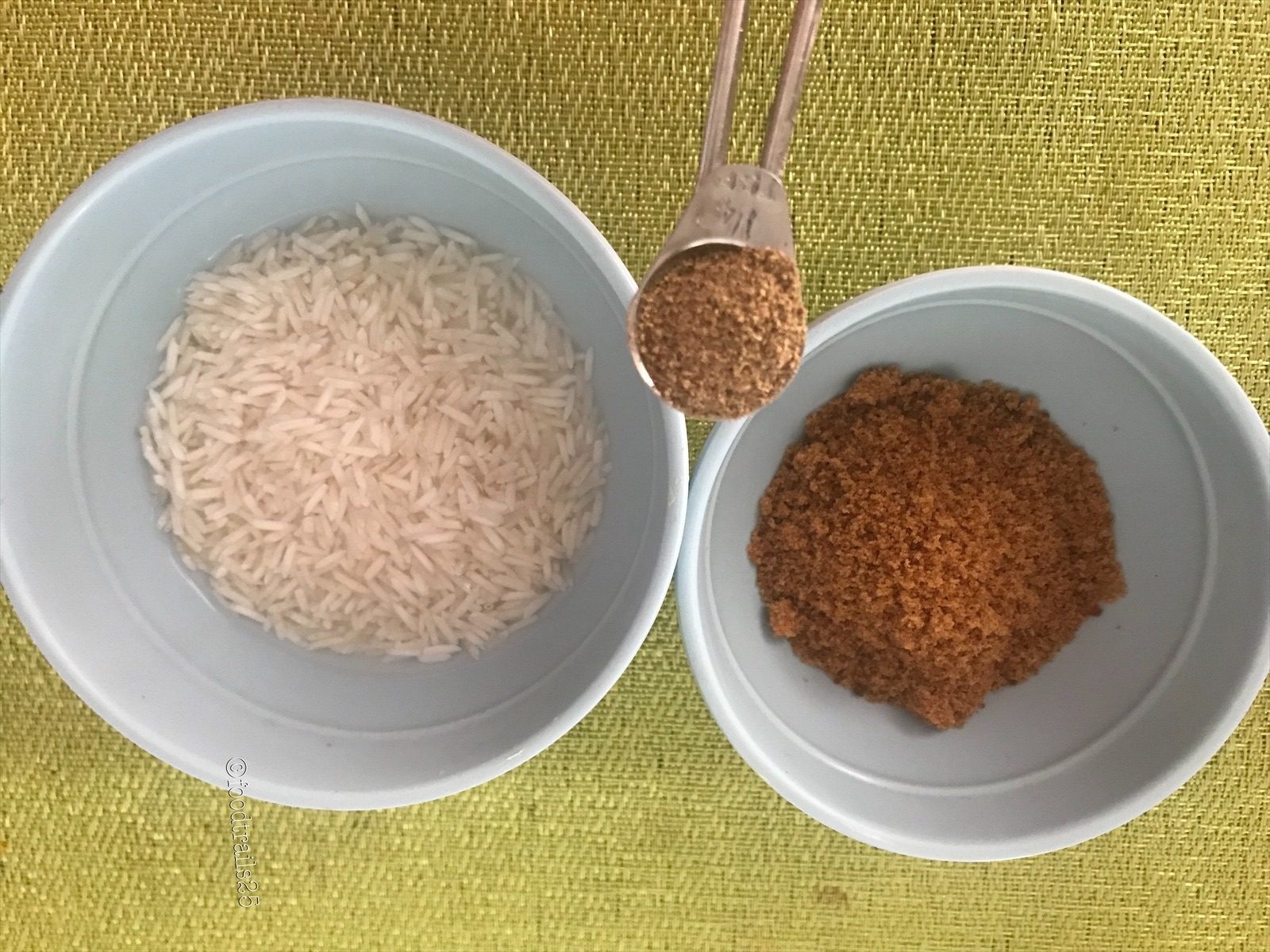 • When ready to cook, drain water from soaked rice. Grind to coarse paste.