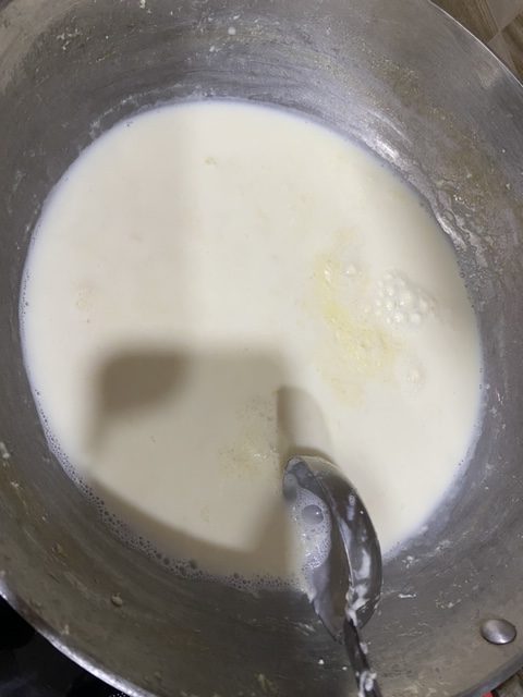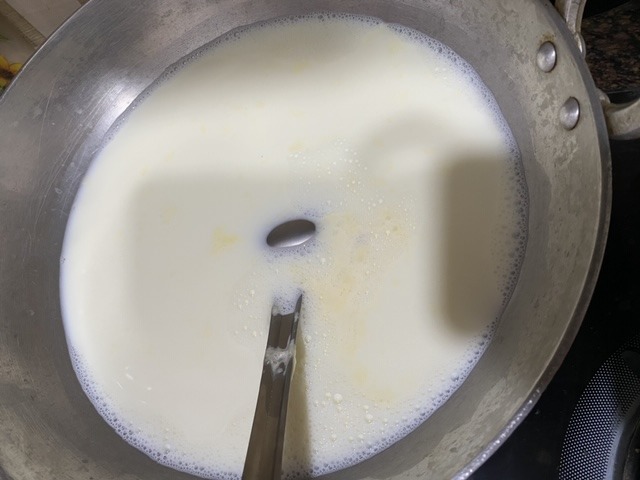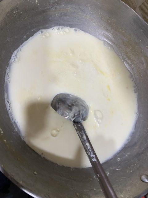 - Keep on stirring the milk and scrapping the sides.