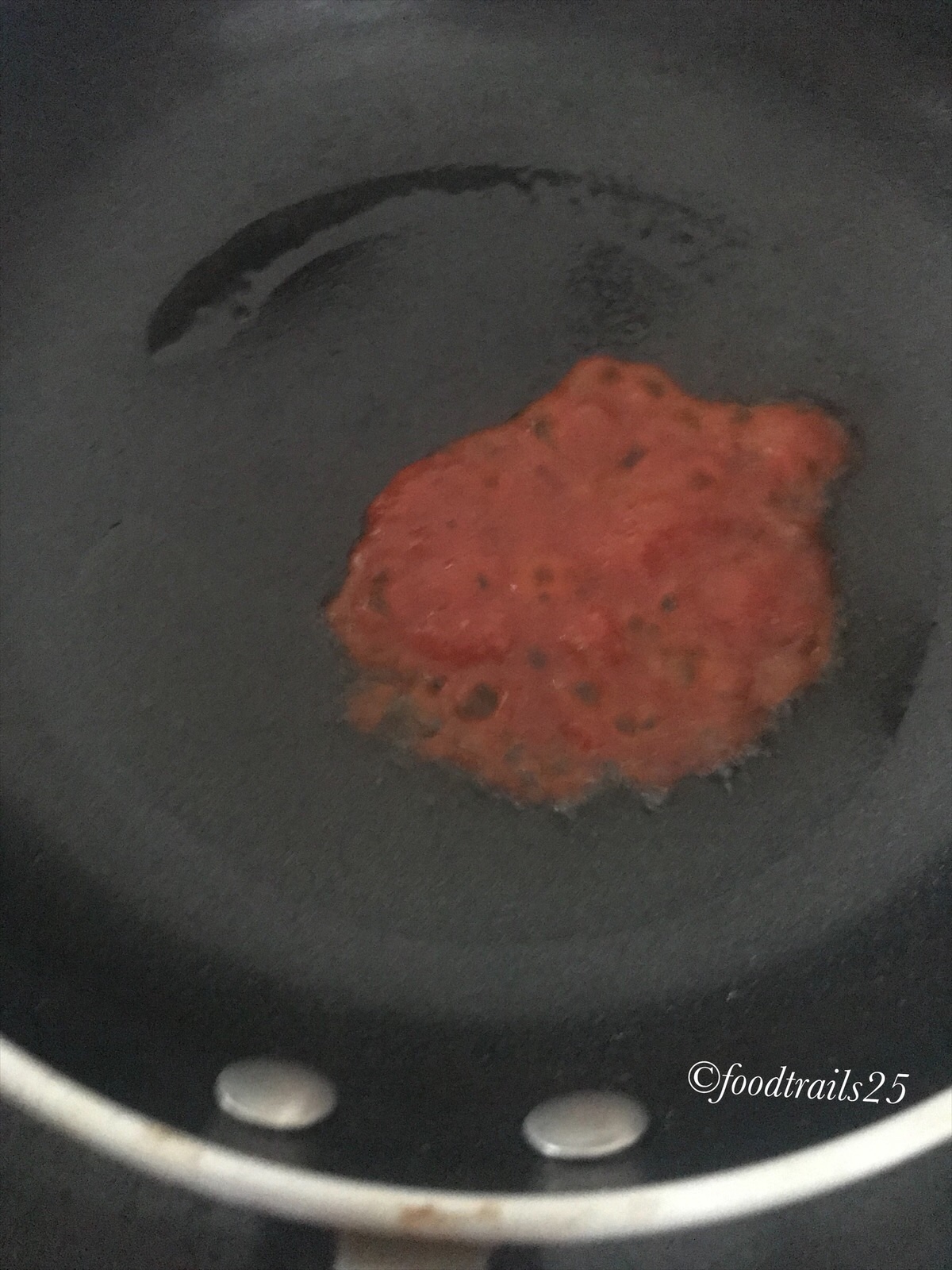 - Heat butter in pan, add crushed garlic(optional), pasta sauce and cook for a minute. Add garam masala, red chilli powder, kasuri methi and mix nicely. Add a tsp of water and mix.