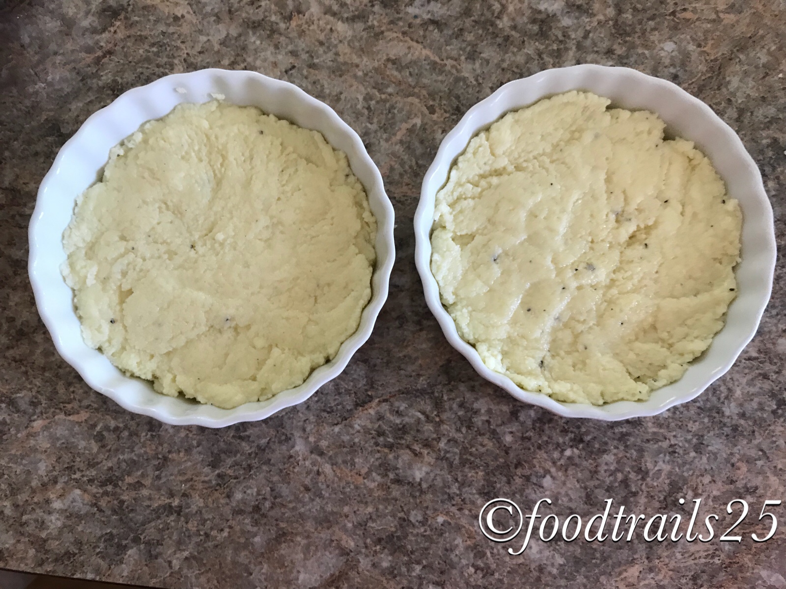 Take a dish in which you want to set it. Grease it well. I used these pie dishes,you can use any baking tin. Use any square or rectangular 6" cake tin.