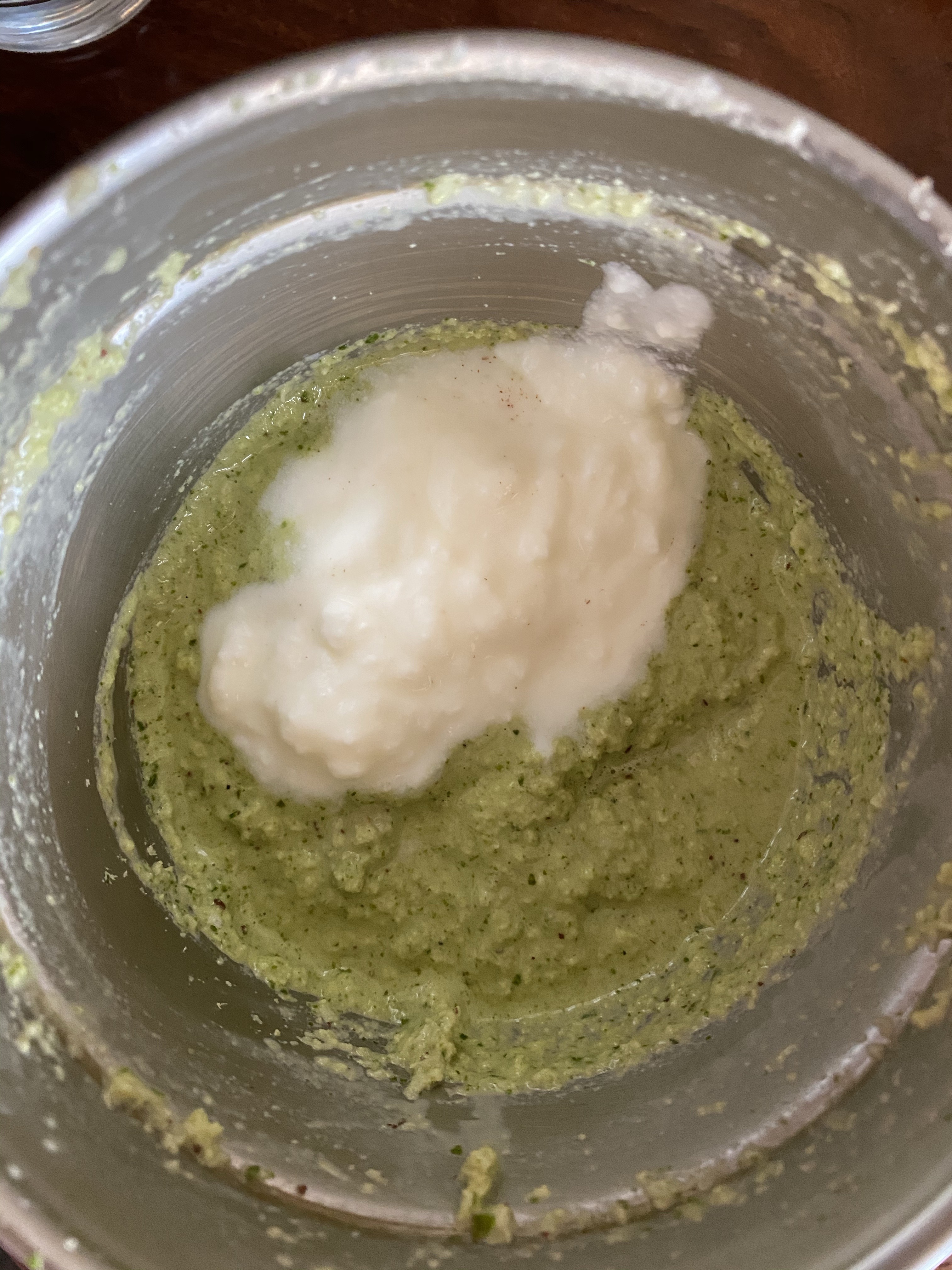 - Now add curd/yogurt and mix well so that curd is nicely mixed in chutney,