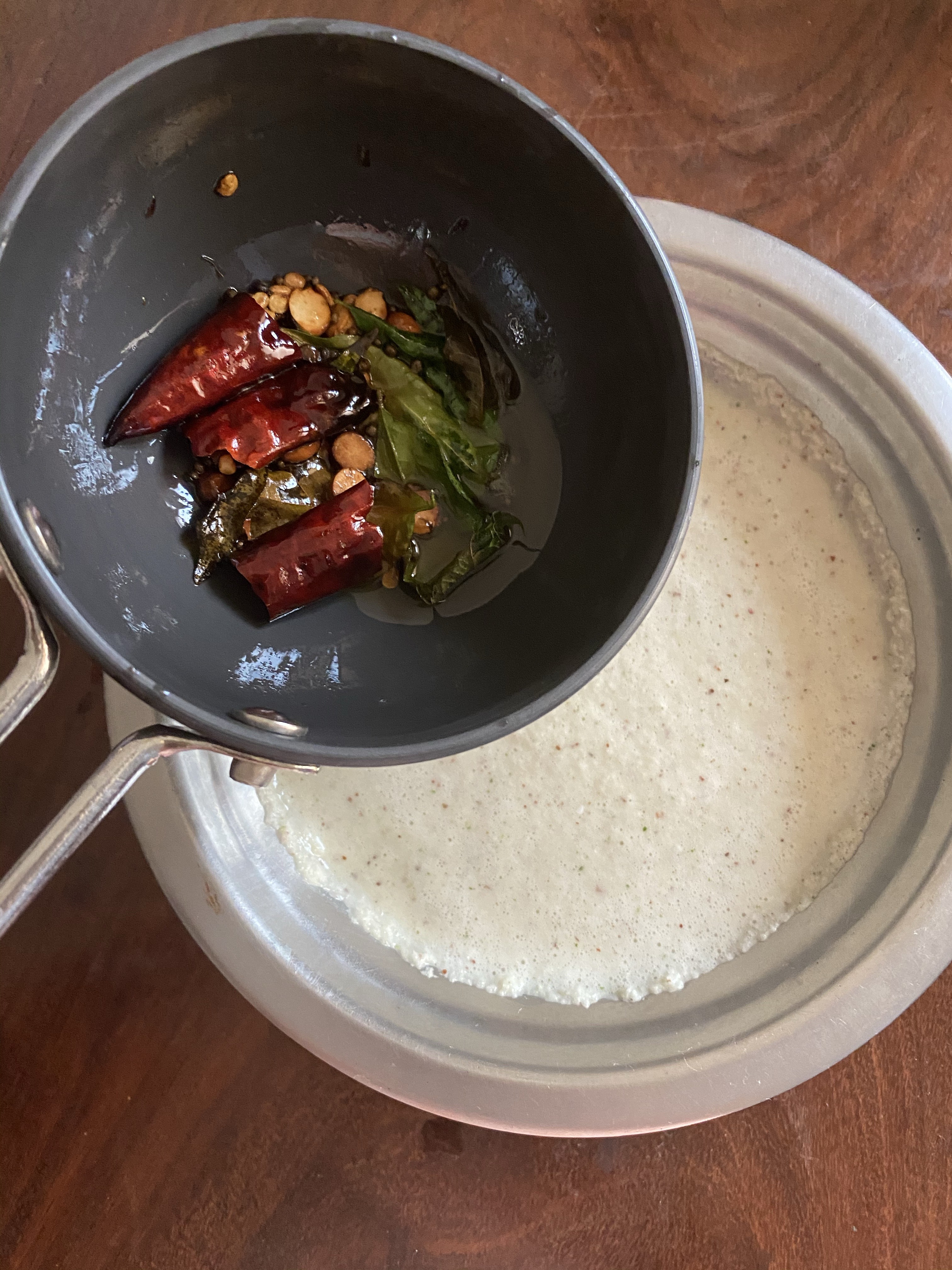 - Add Tadka and serve with idlis, dosa or the way you like it.