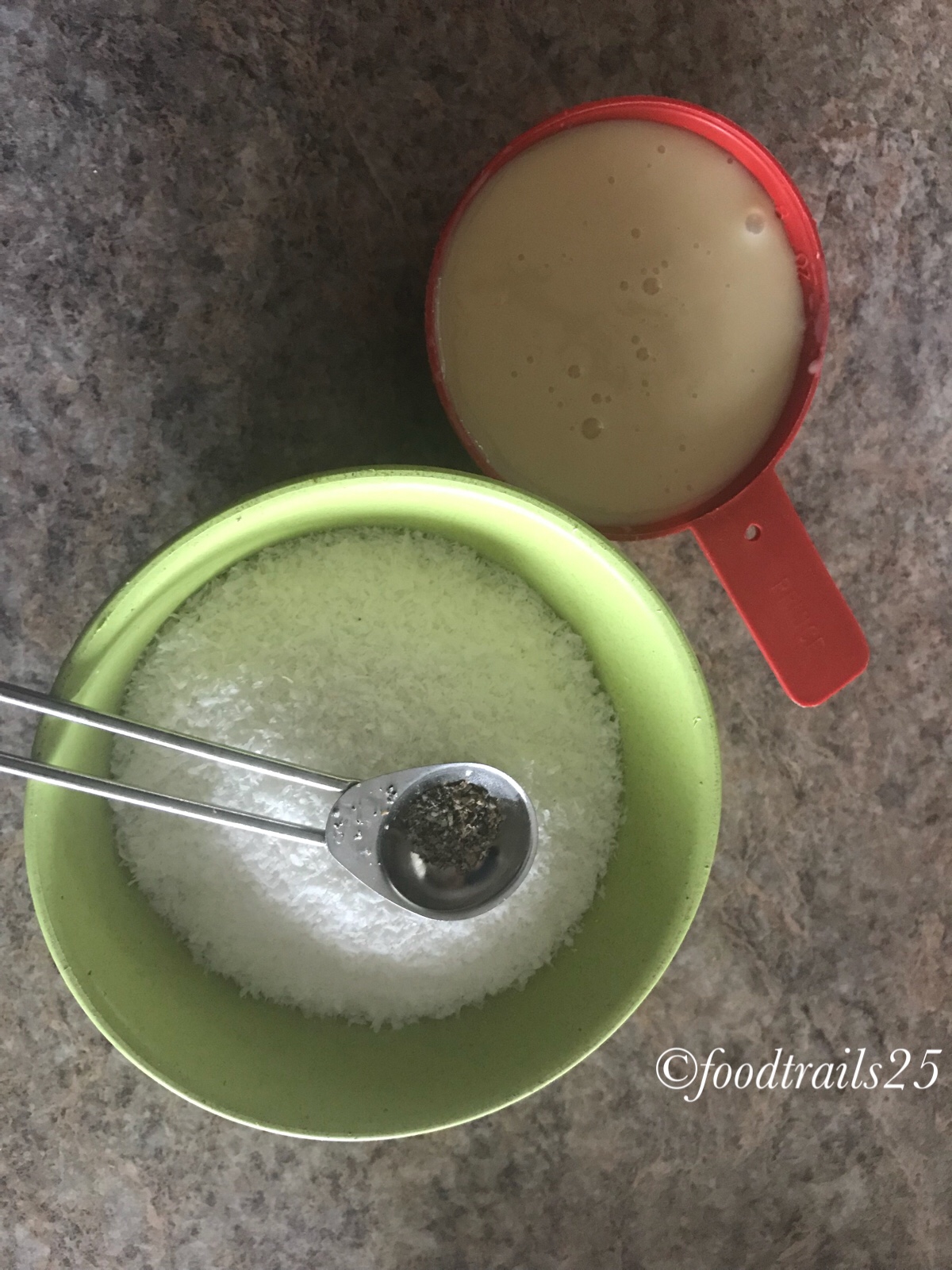 - Keep aside the other remaining half cup of coconut for rolling the ladoos.