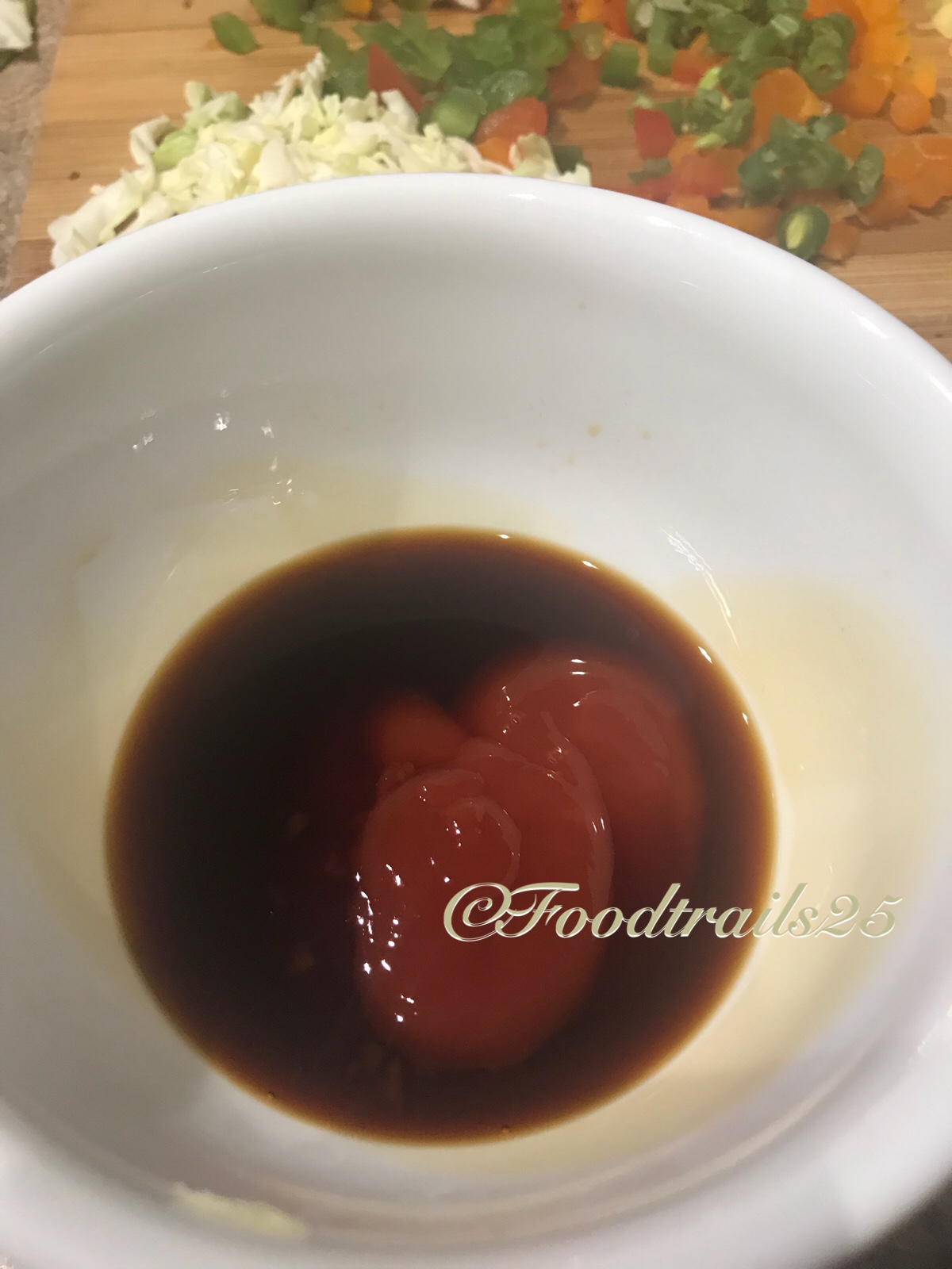 - Add Soya Sauce, Tomato Ketchup, Chiili Sauce and Vinegar