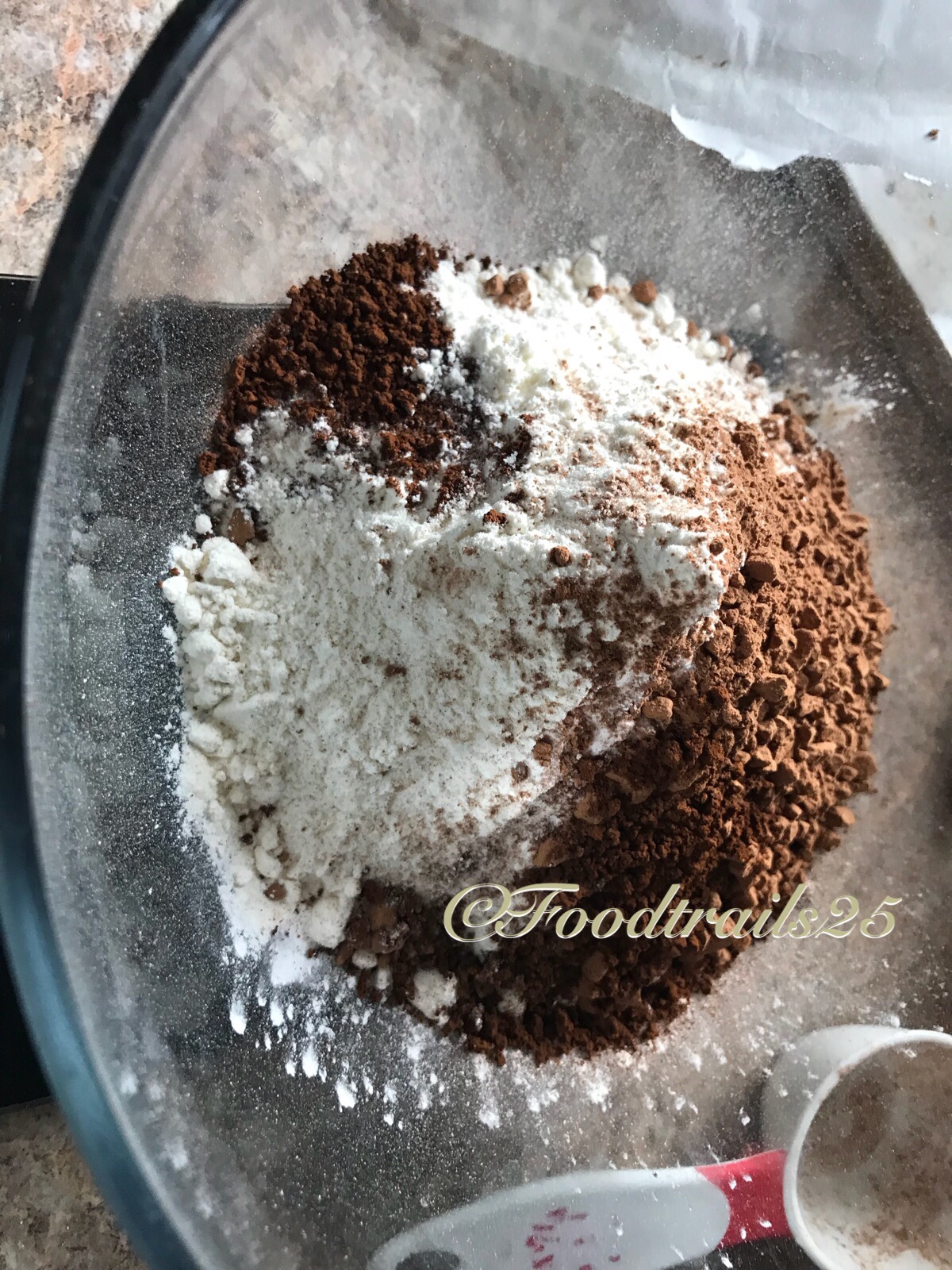 Mix together Flour,Cocoa Powder, Baking Powder and Baking Soda
