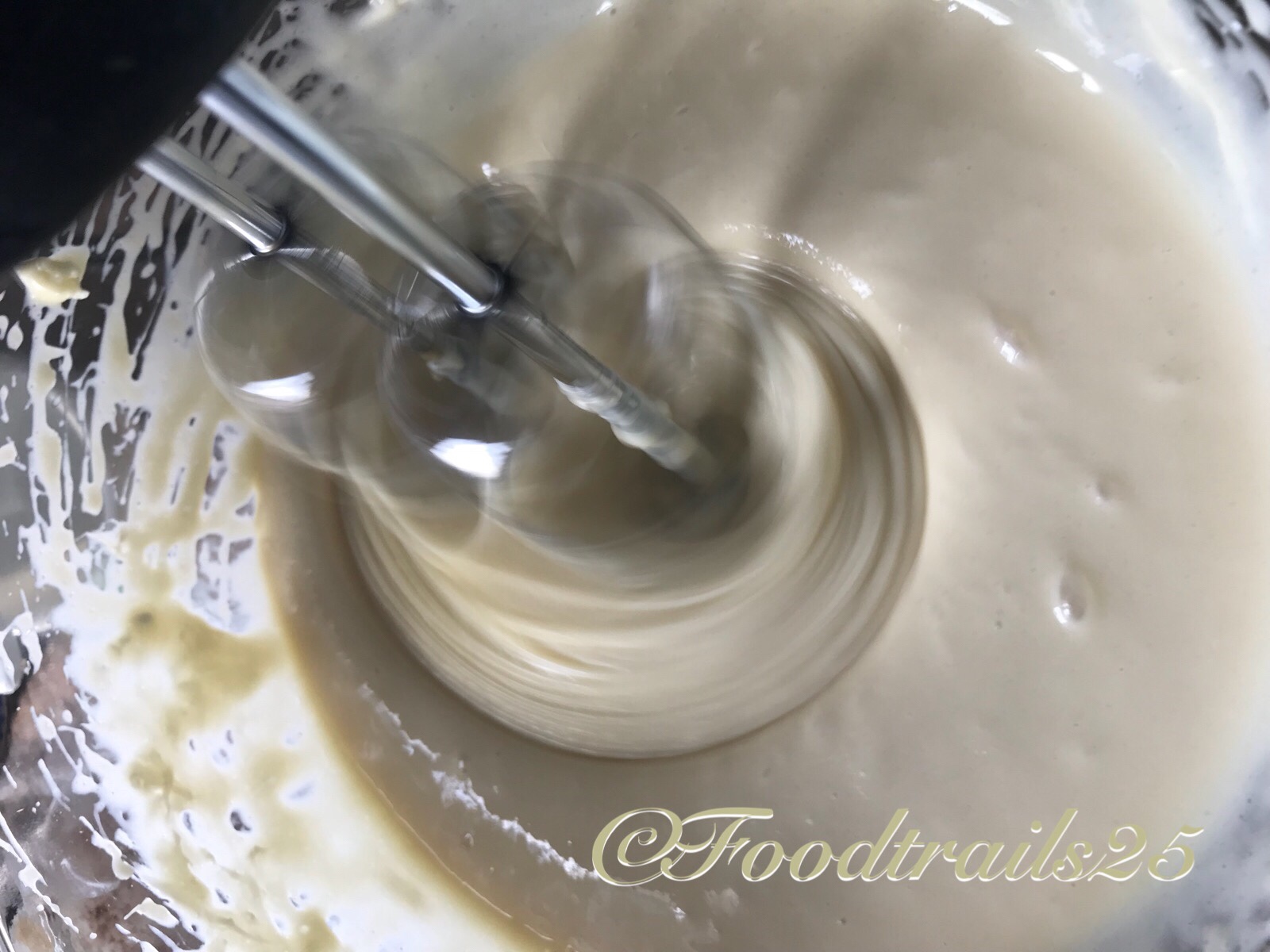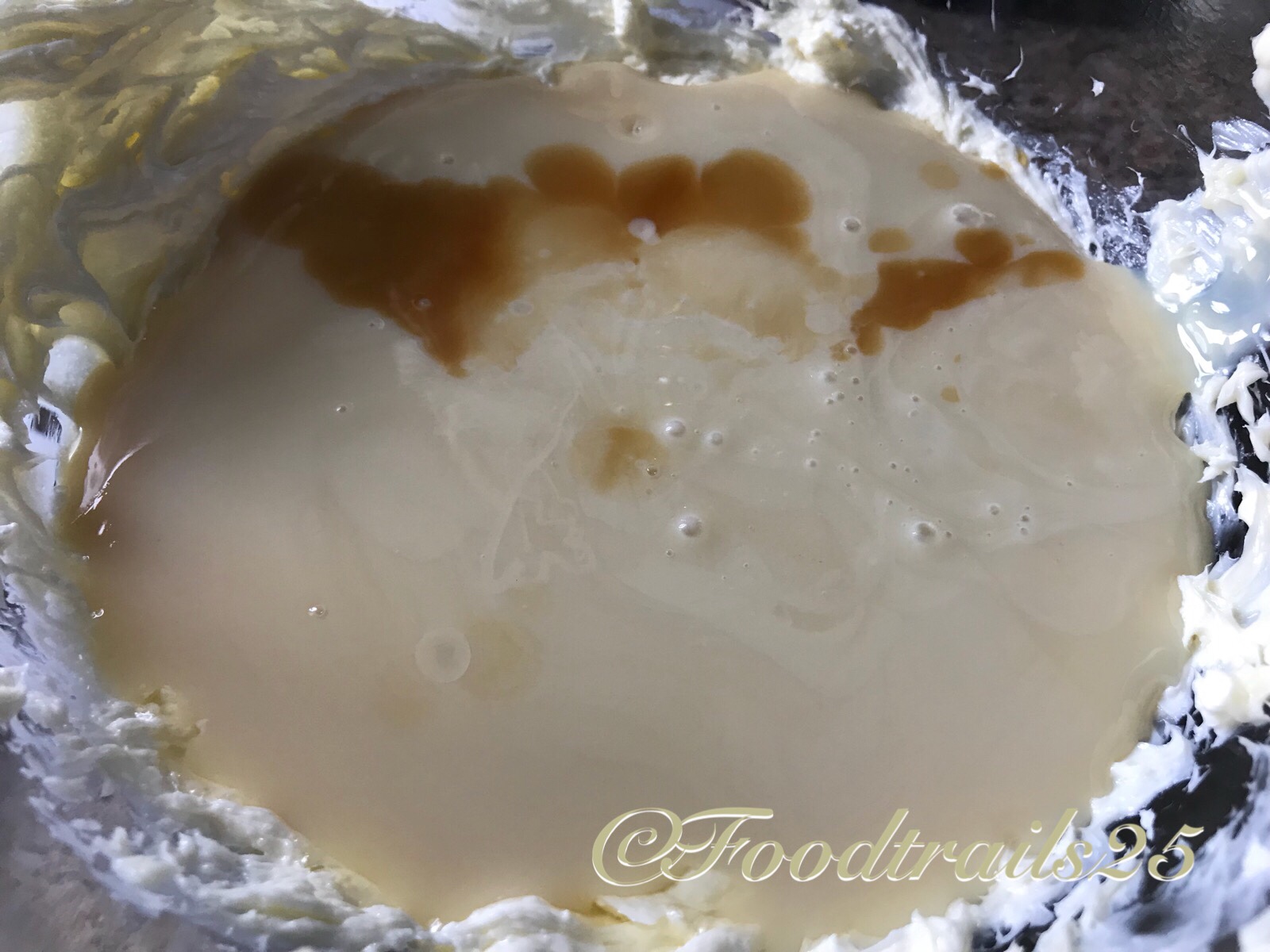 4. Add condensed milk and vanilla essence and beat till it mixes well.
