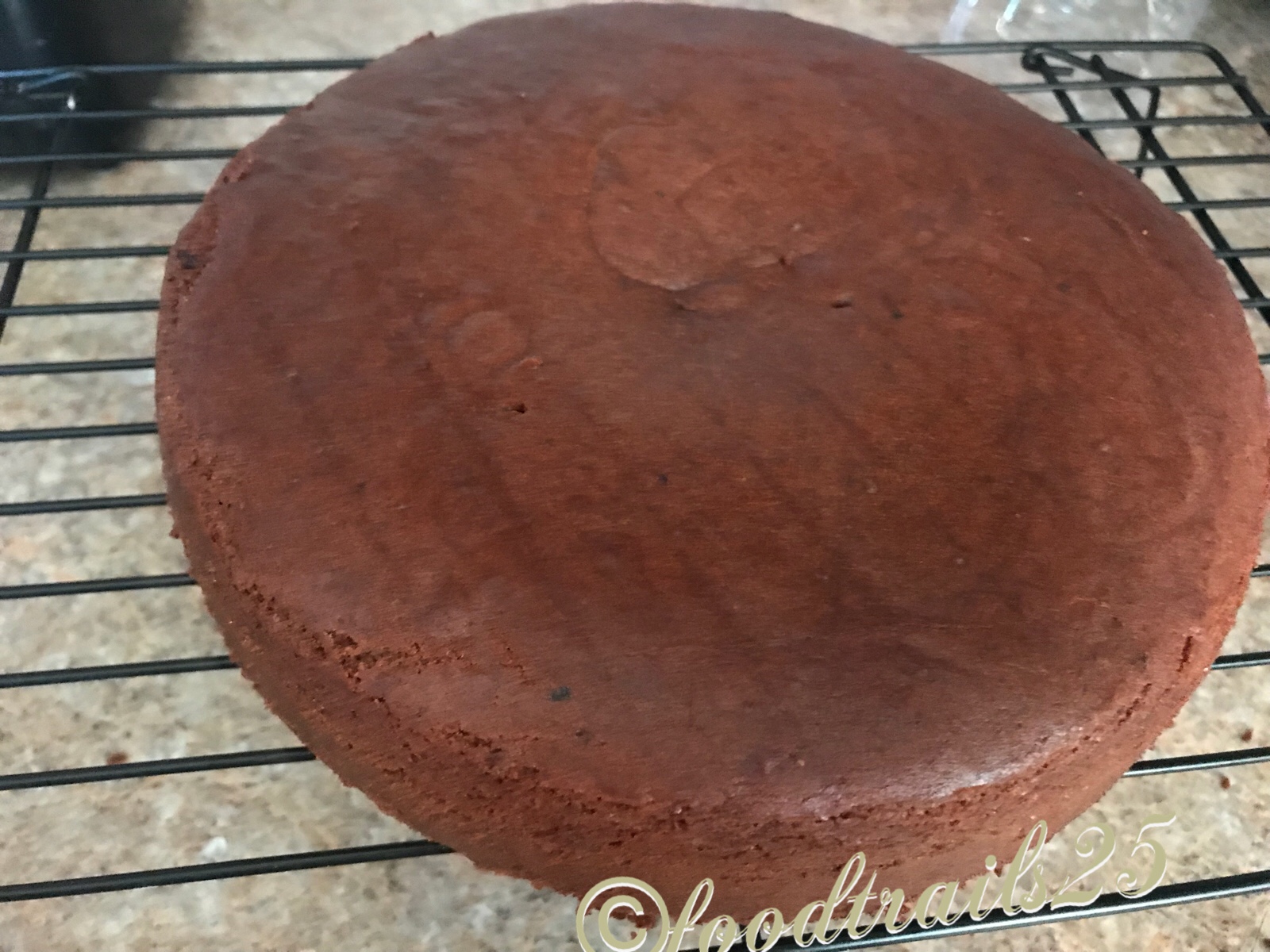 10. Check the doneness of the cake by inserting a toothpick in the center, also the edges of the baked caked should leave the cake tin sides.