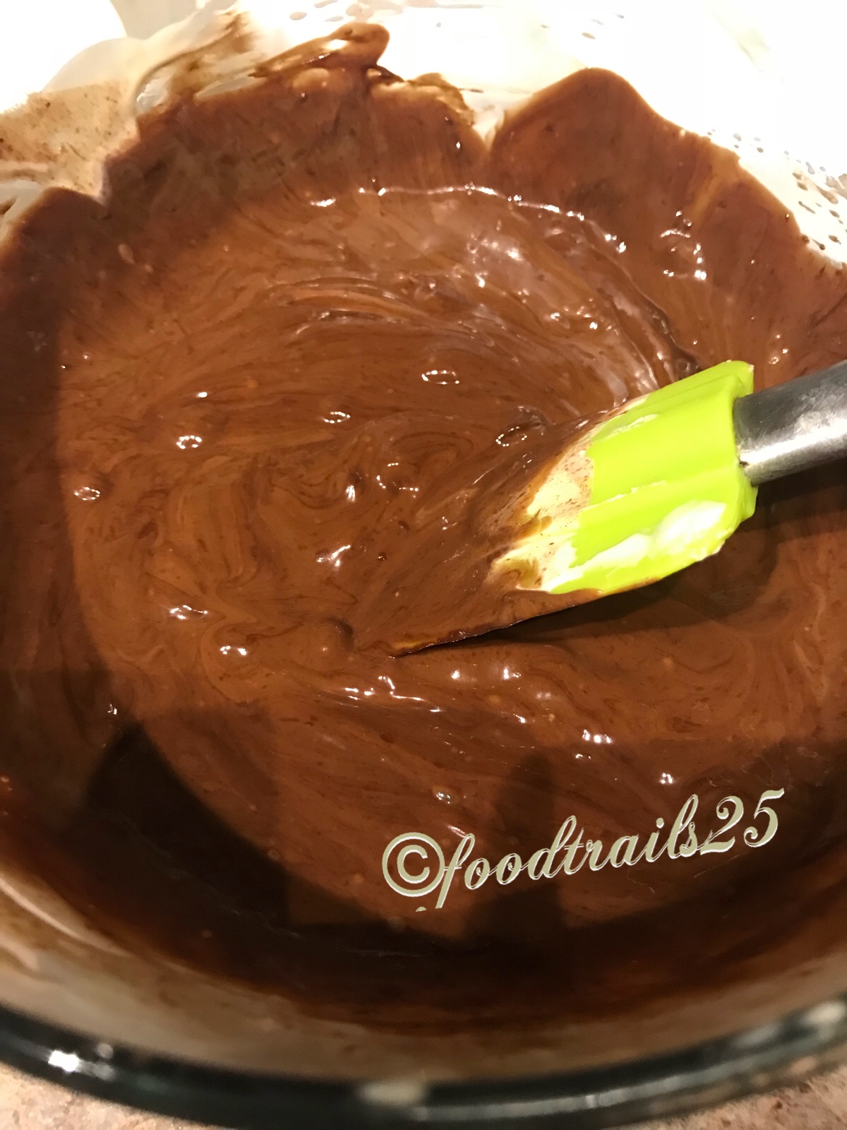 I decorated the cake with Milk Chocolate Ganache(orange flavored). I made this cake for a potluck party. For the recipe of Milk Chocolate Ganache, click on the link. For frosting. cut the cake into half, moist the two halves with sugar syrup(make the syrup by boiling equal parts of water with sugar, this can be stored for later use also), add ganache a filling, sandwich the cake and cover the cake with frosting/ganache.