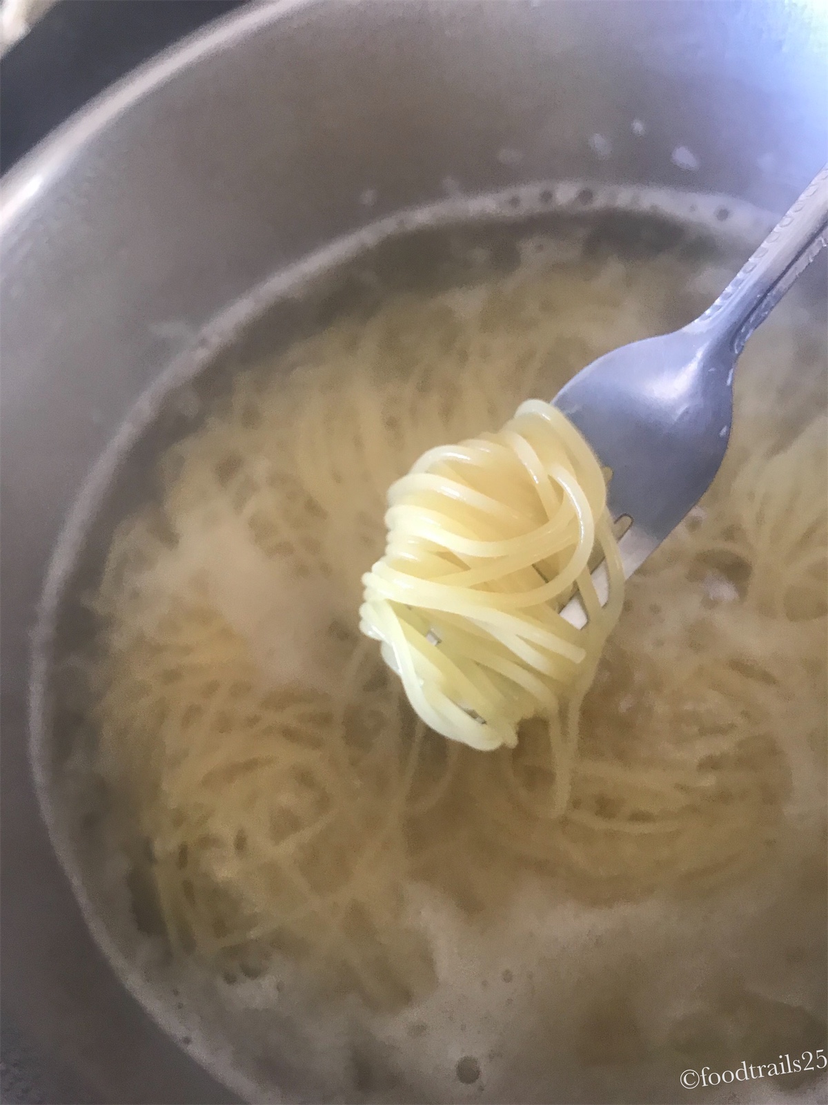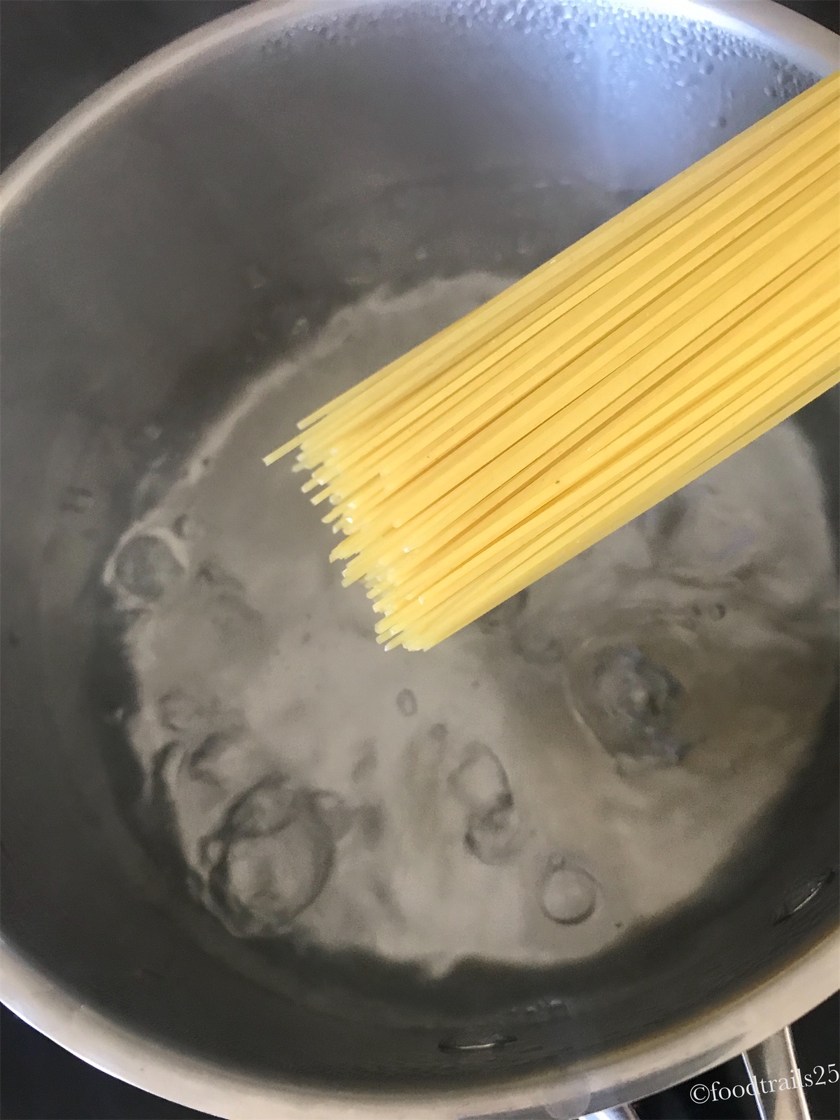- In a big pot boil enough water to boil. When the water comes to a roaring boil, add noodles to it and cook till al-dente.16 ounce Noodles