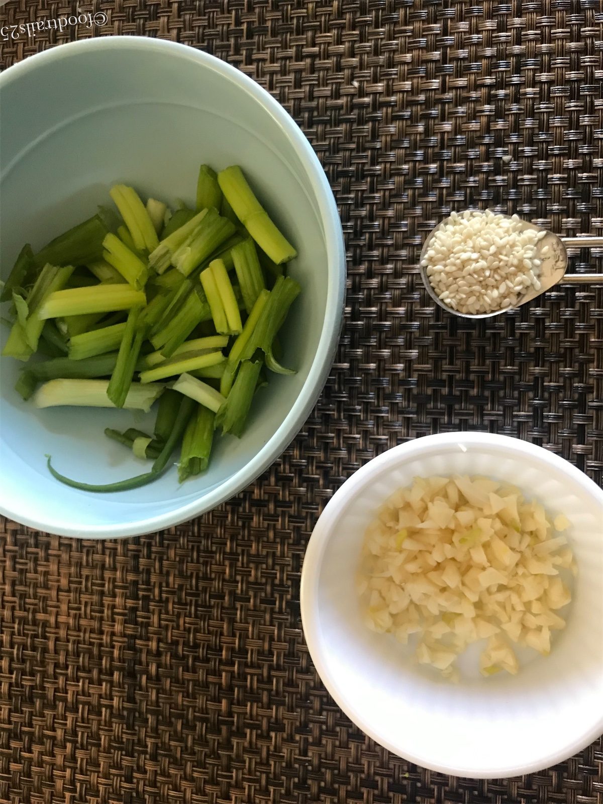 - Very finely chop/mince garlic. Chop spring onions white and green part, keep the size as per your preference.7-8 Garlic Cloves, ½ Cup Spring Onions chopped