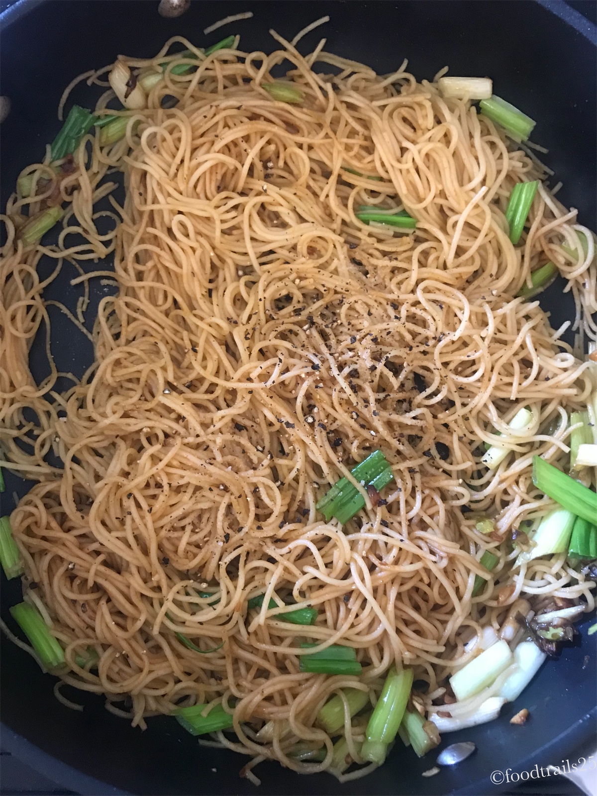 - Once done add spring onion, add toasted sesame seeds on noodles with black pepper and serve garnished with spring onion greens.1 tsp Freshly ground Black Pepper, 1 tbsp Sesame Seeds