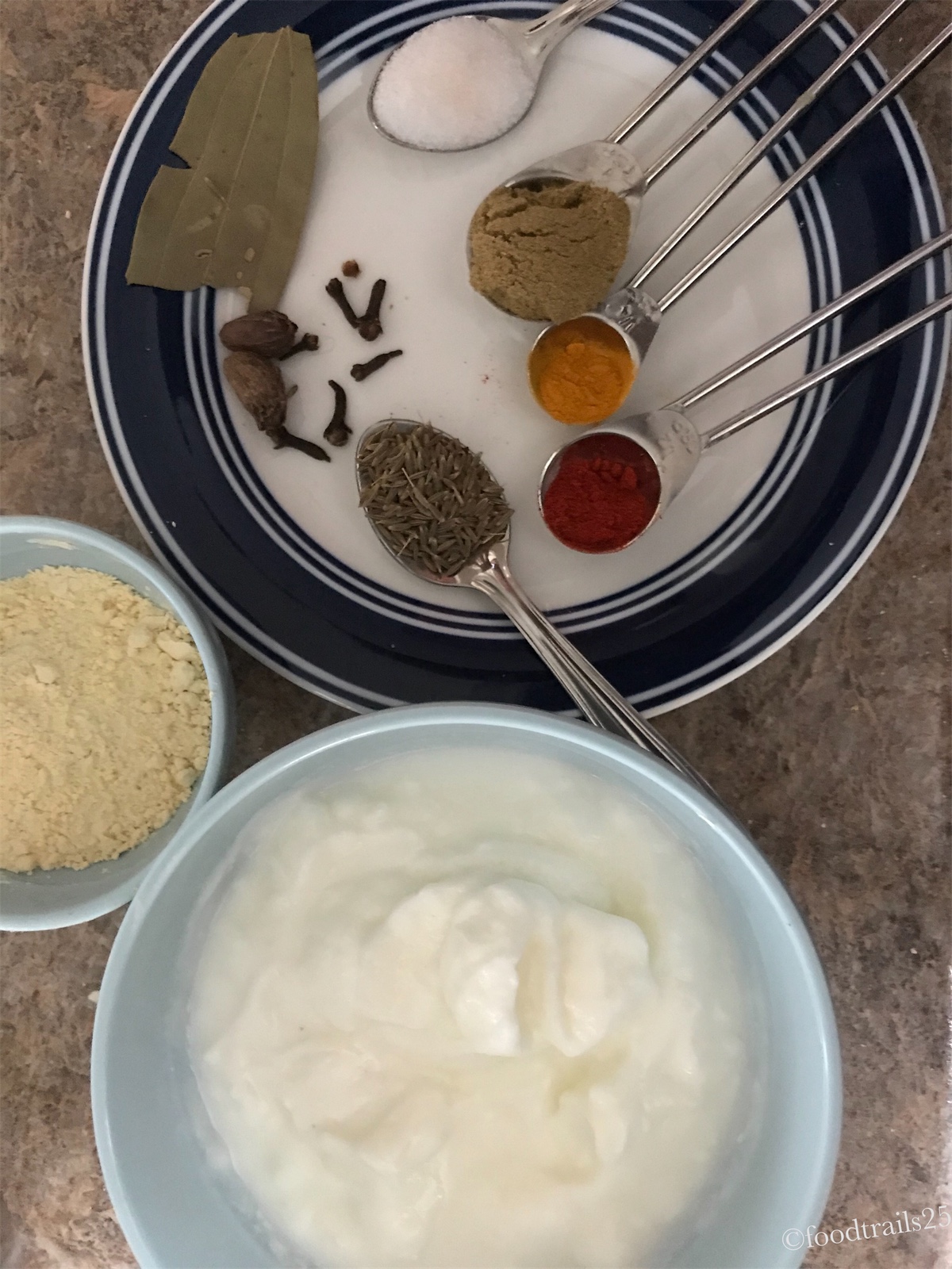 To make spicy yogurt curry, use a sour yogurt/khatta dahi(curd). Add besan/chickpea folour along with other spices. Making puree with or without tomatoes, onion and garlic depends upon one's preferences. Many people skip onion and garlic when making on festive occassions . The curry gets it's authentic flavour from the whole spices like bay leaves, black cardamoms (badi eliachi) and cloves.