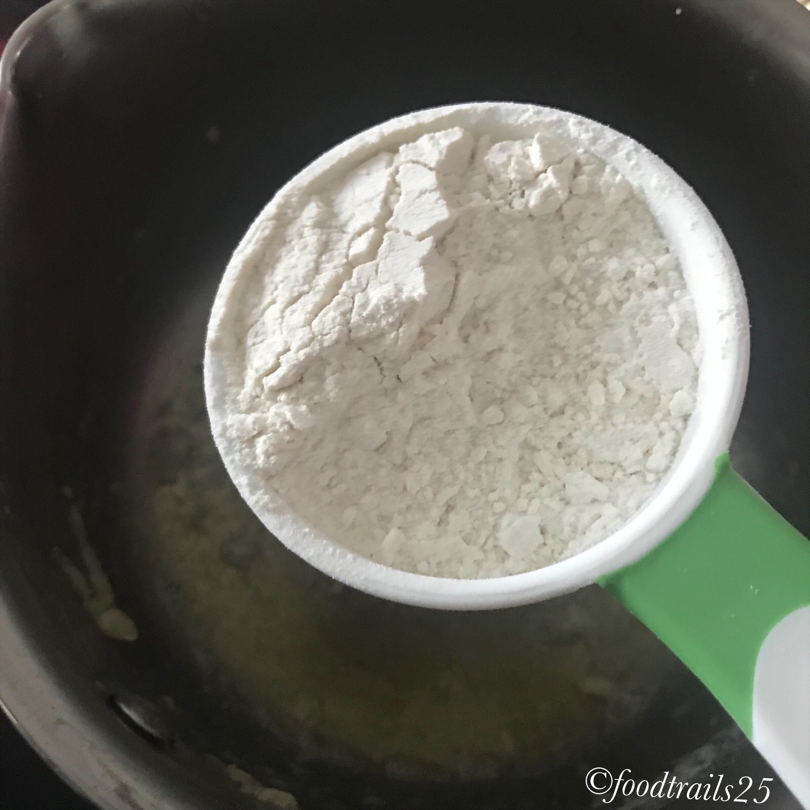 - You can leave garlic in the first step. After butter starts bubbling, add flour and mix well.