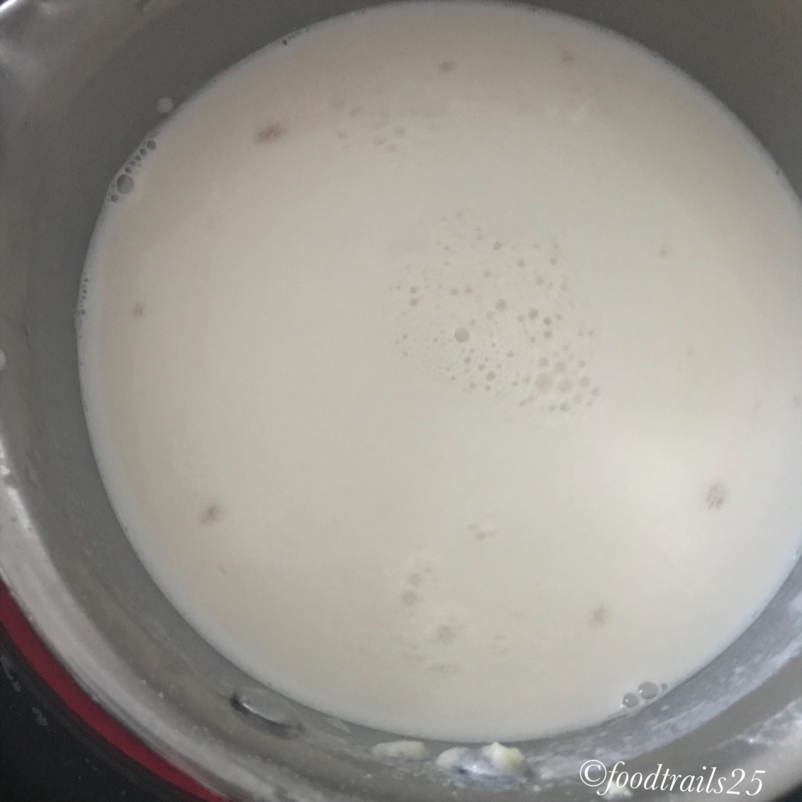 - Add milk and whisk it continuously, till it thickens to cream like consistency,