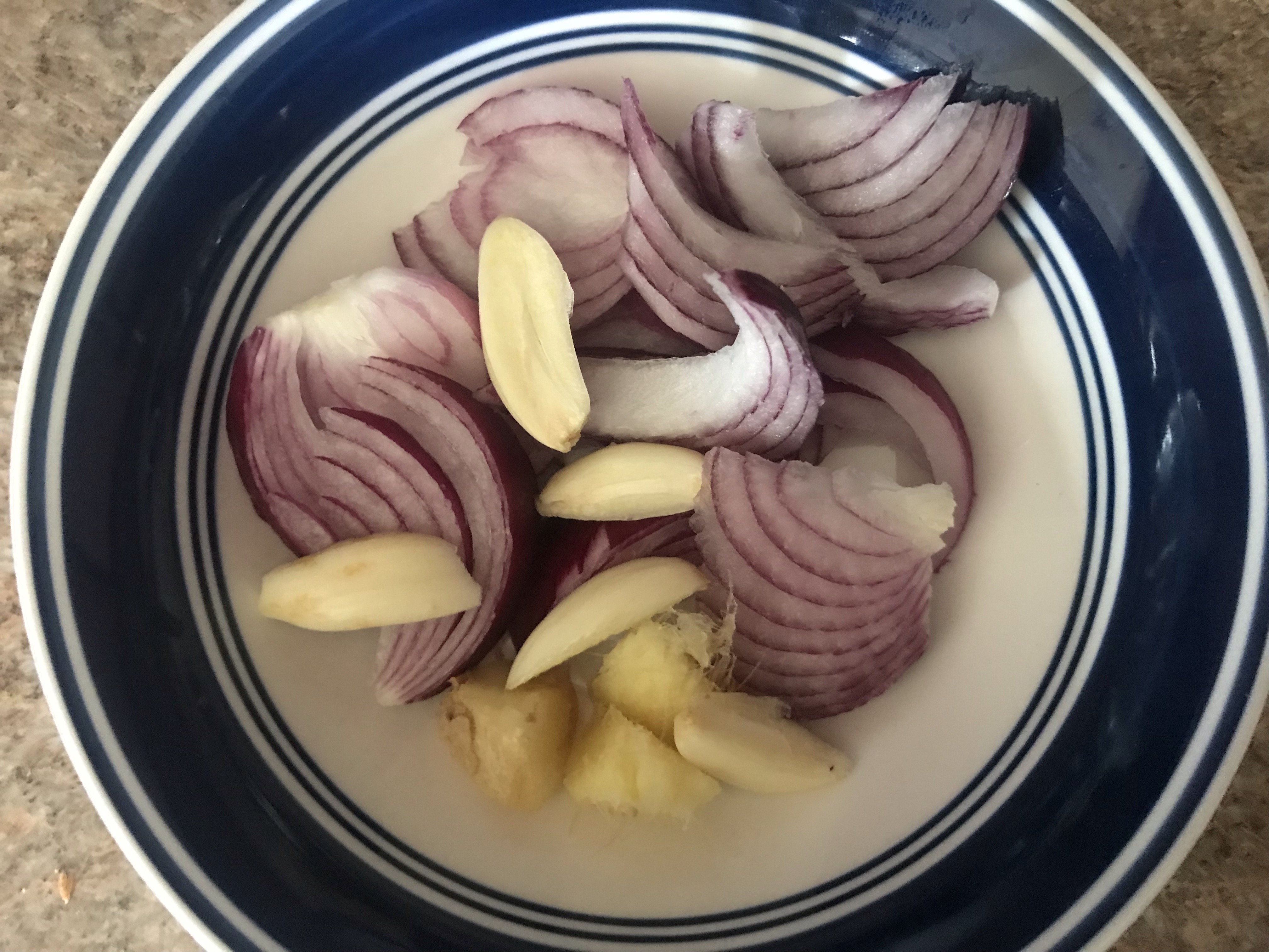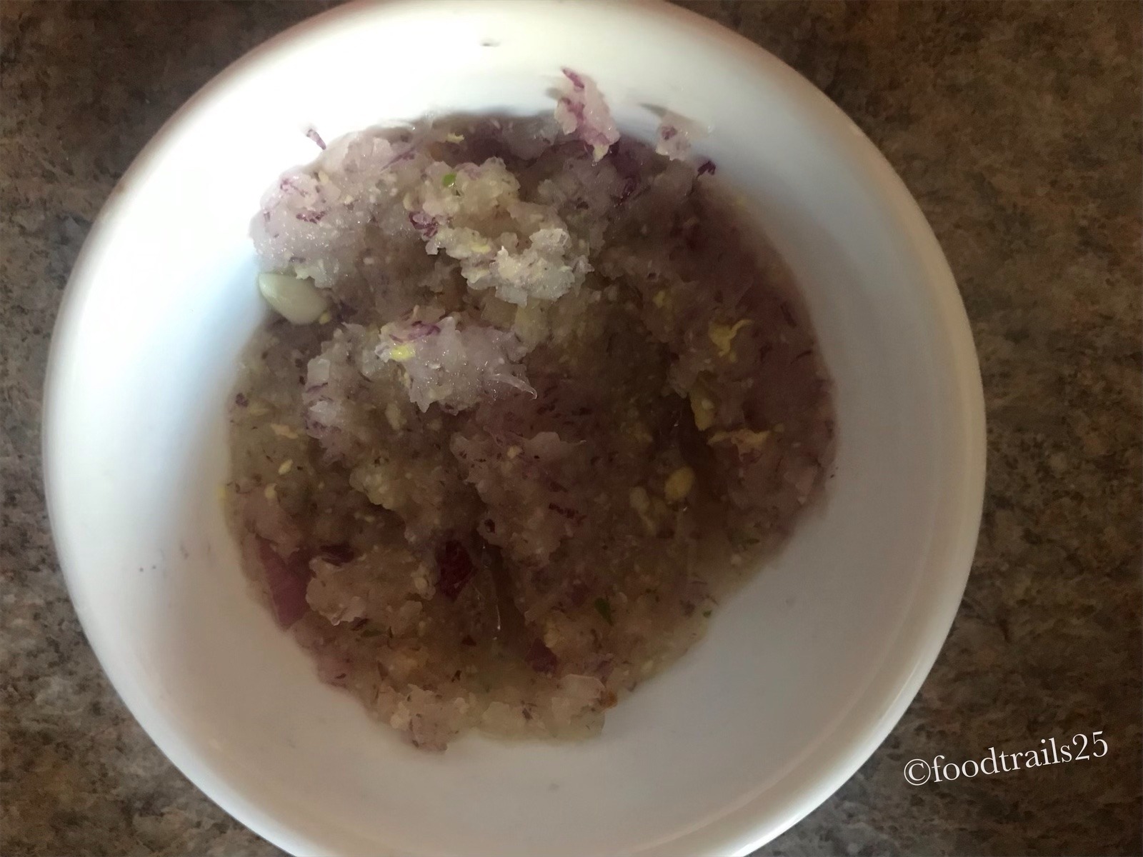 - Grind onions, ginger , garlic and green chilli and make a paste. Take out and keep aside.