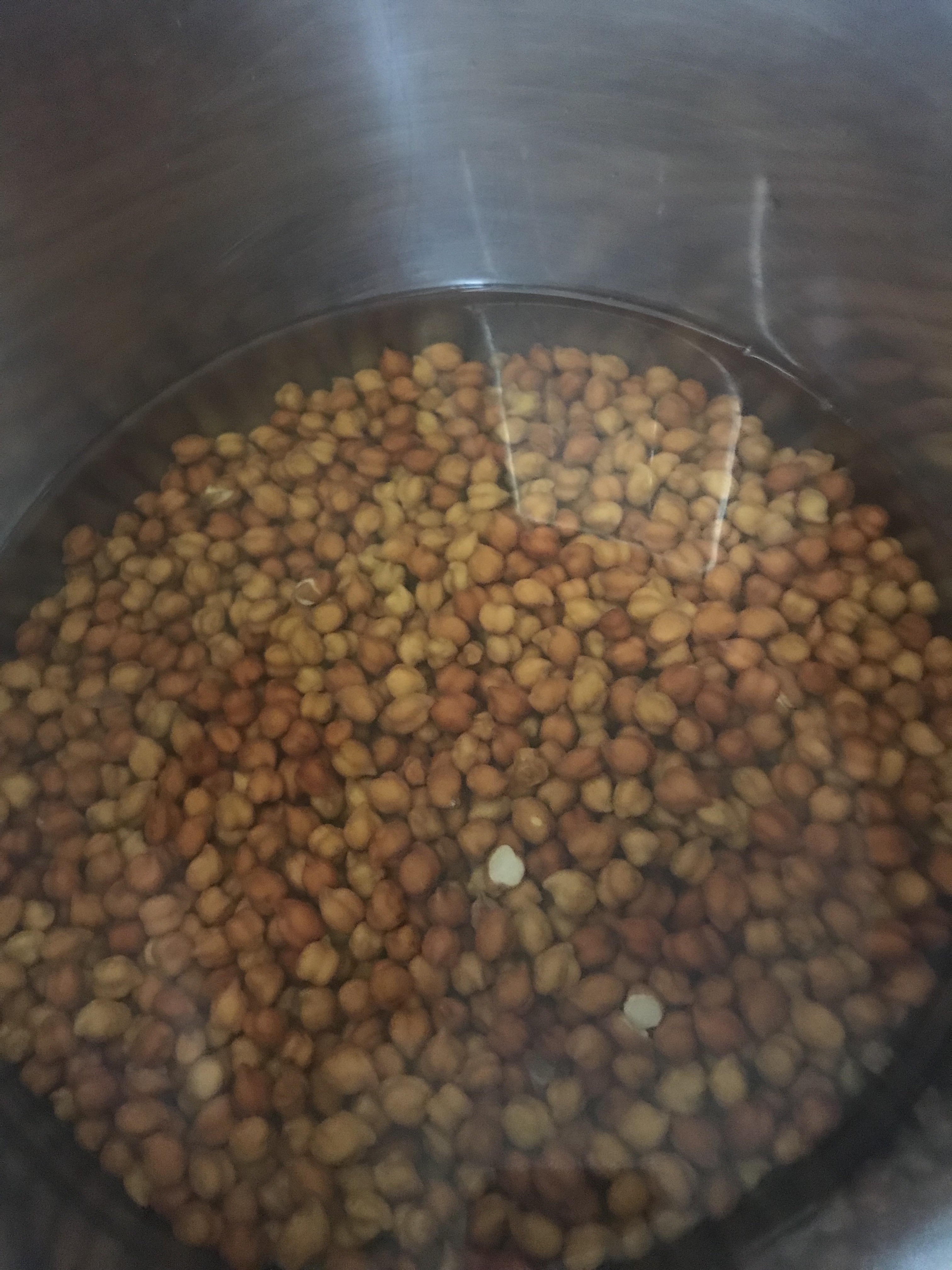 - Transfer to a pressure cooker and add water 2-3" above the level of chickpeas.