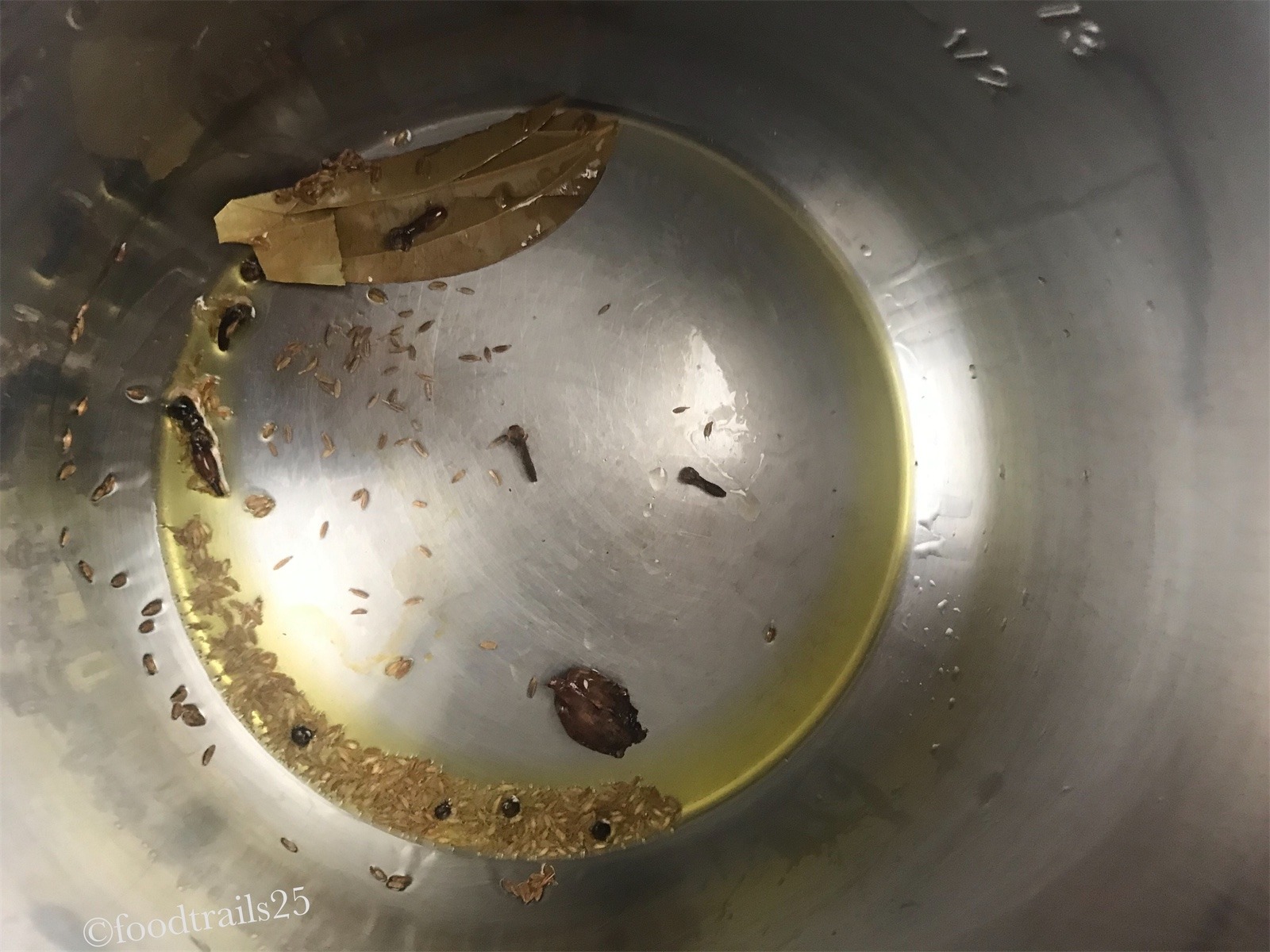 I also like to add whole spices like bay leaf, cinnamon stick, cloves, black pepper and black cardamom. Whole spices add flavor to curry and is optional.