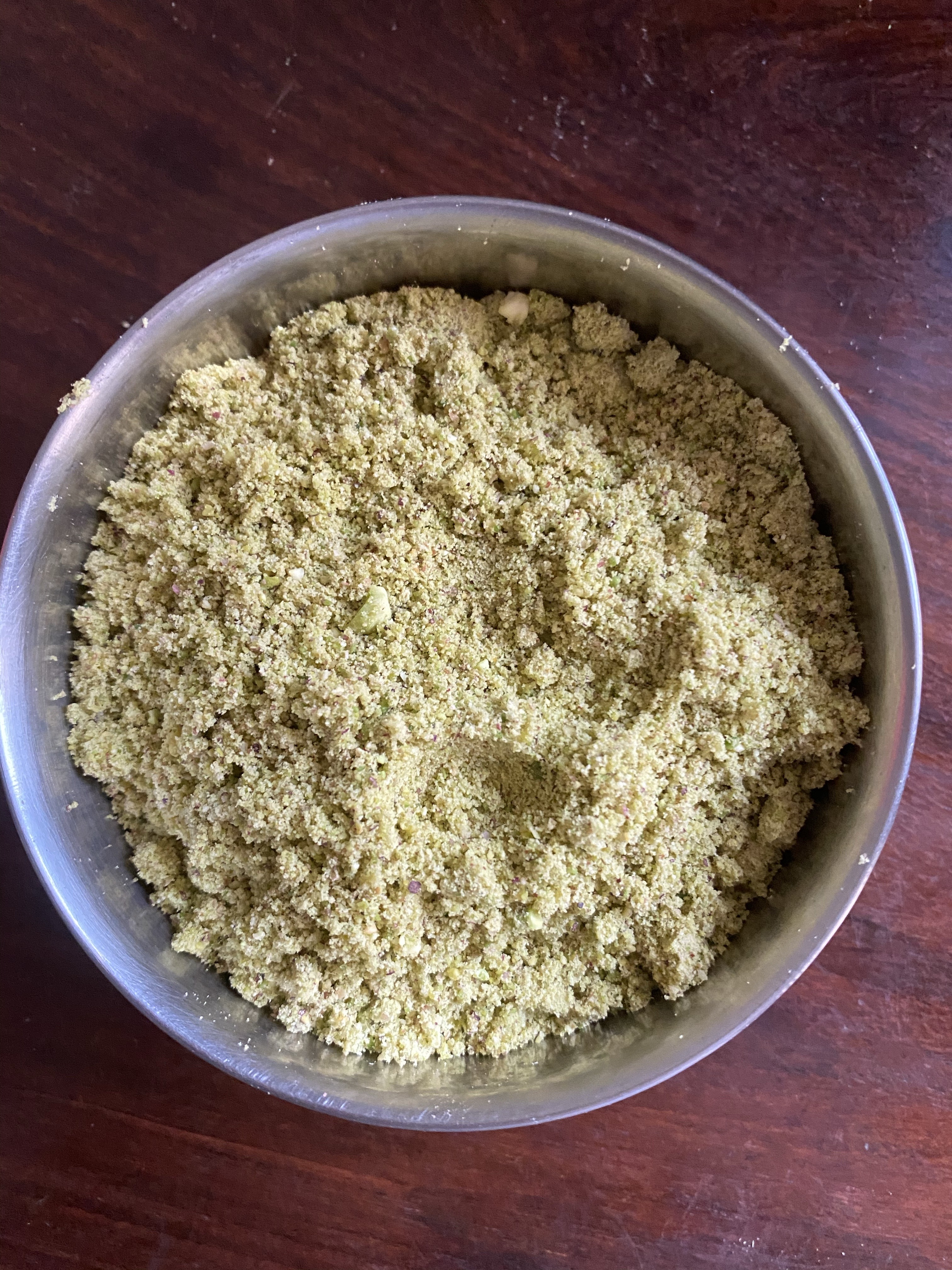 - Grind pistachios coarsely.