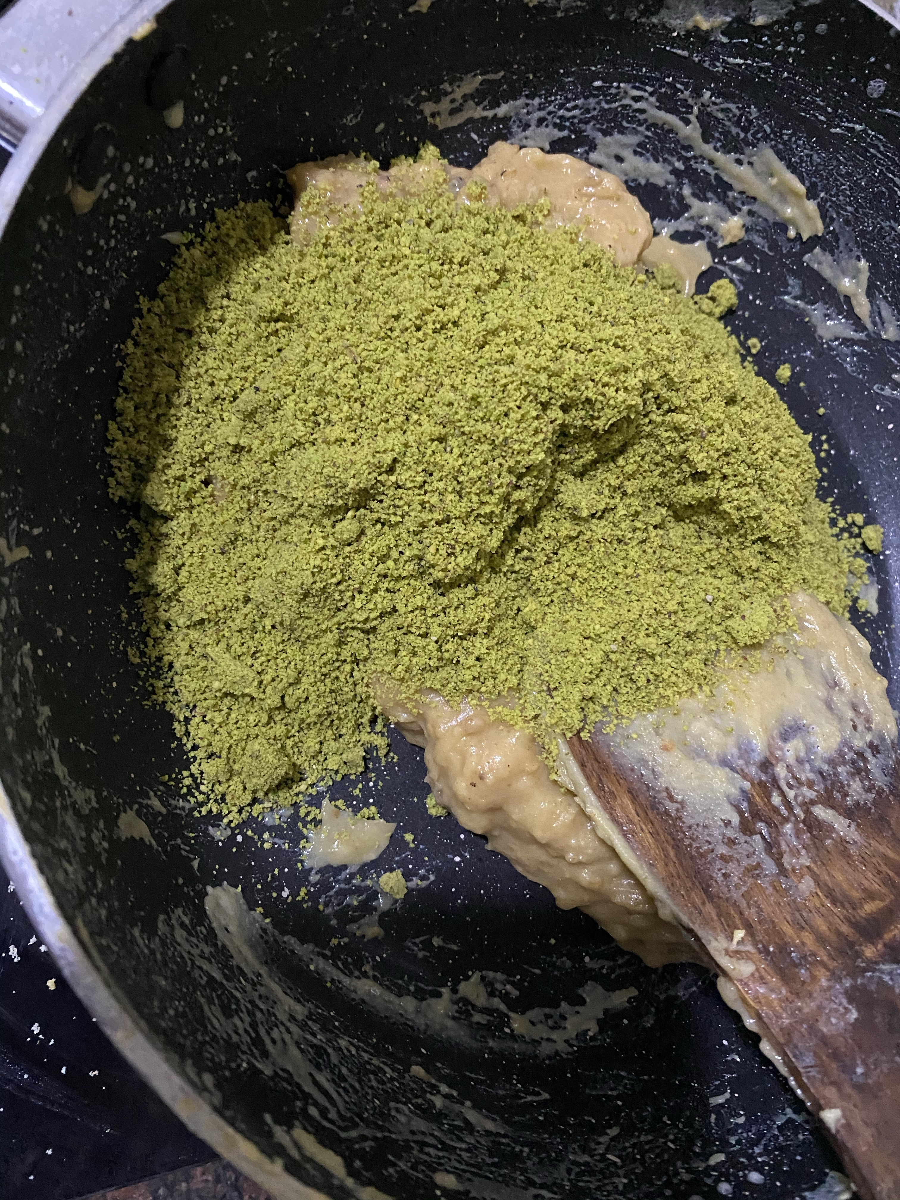 - Quickly working on it , mix pista powder well. Take care not to burn the mixture.