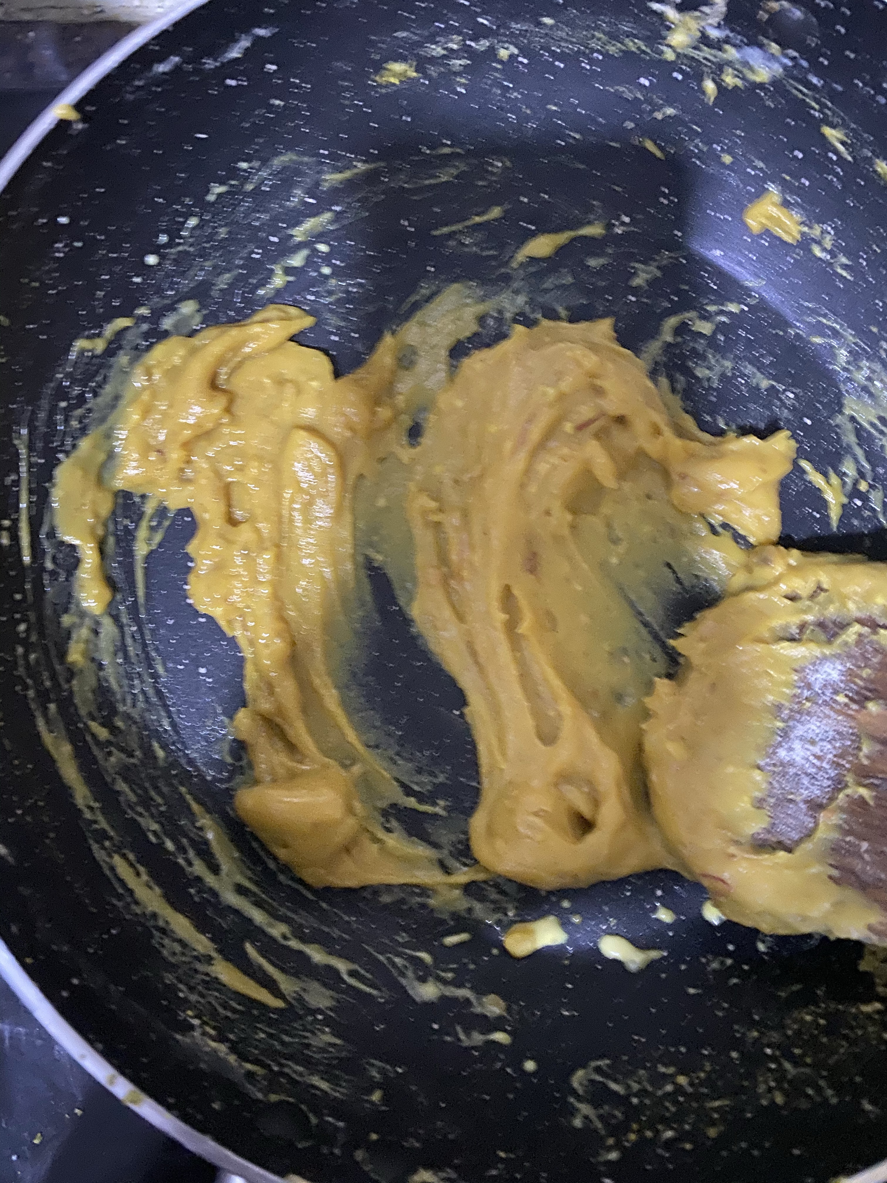 - Roast it for another 2-3 mins, till it starts to form a sticky mass. It is almost similar to mawa or khoya.
