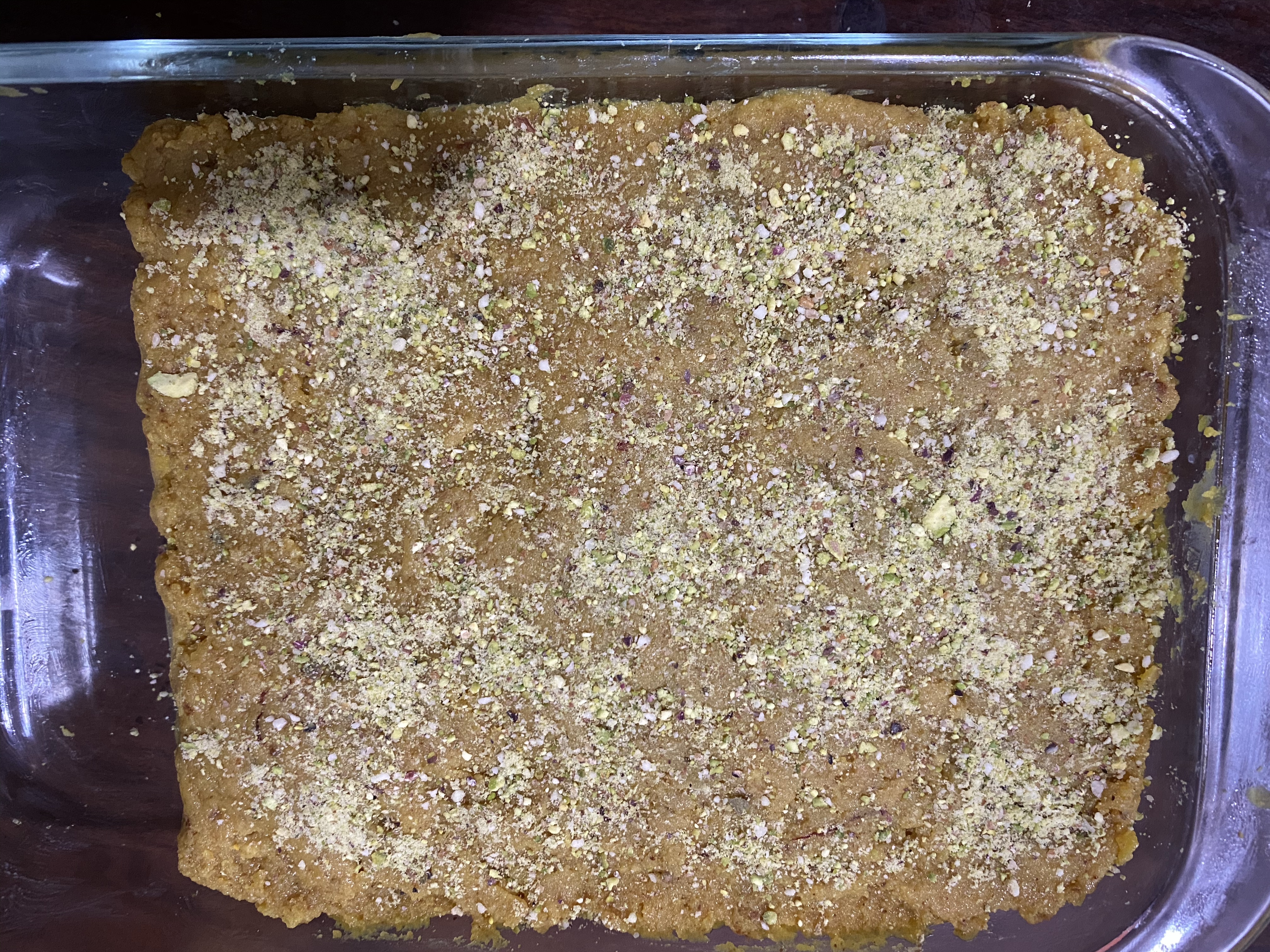 - Now spread this mix over the pistachio layer. Spread it evenly.