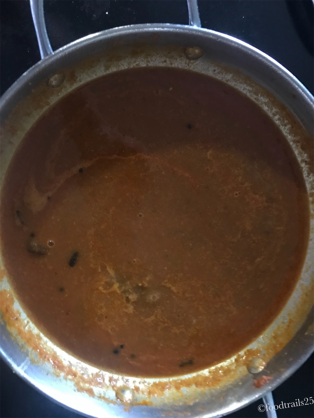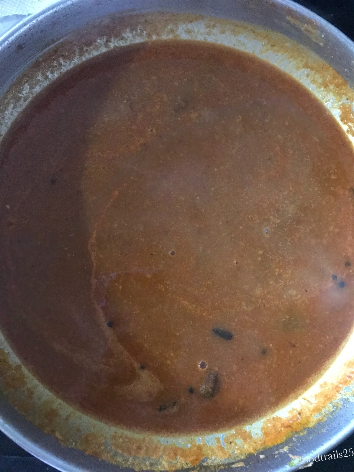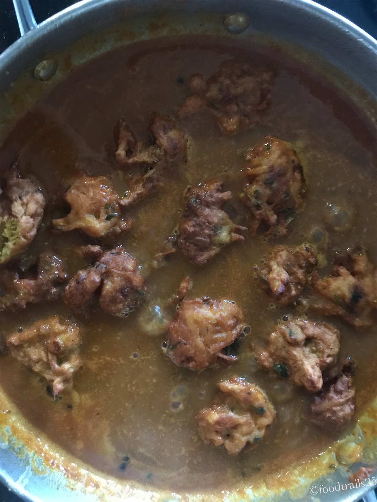 Spicy gravy is made with onions and tomato with ginger and garlic. You can use Bhuna Masala also for the gravy. This gravy gets it richness from the chickpea slurry that is added to thicken the gravy.