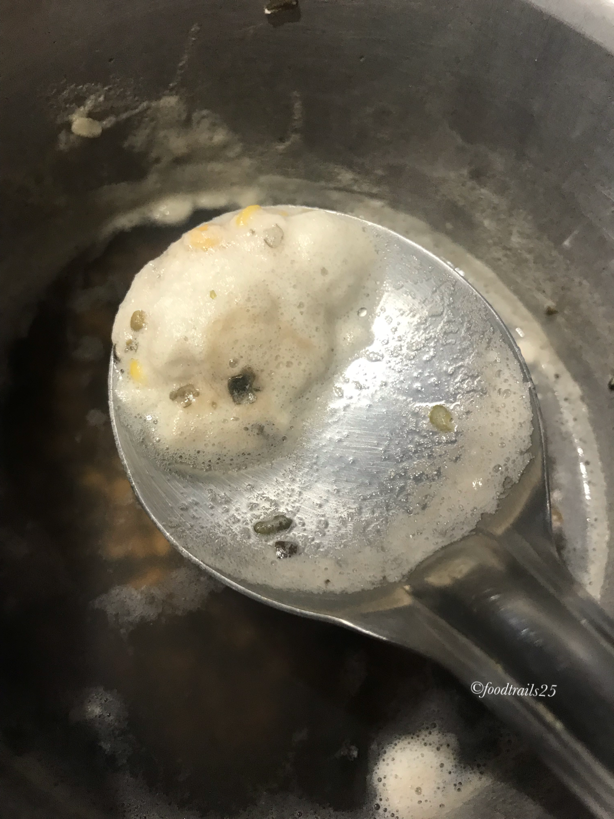- When water the lentils starts to boil, collect the forth that gathers at the top and discard it.