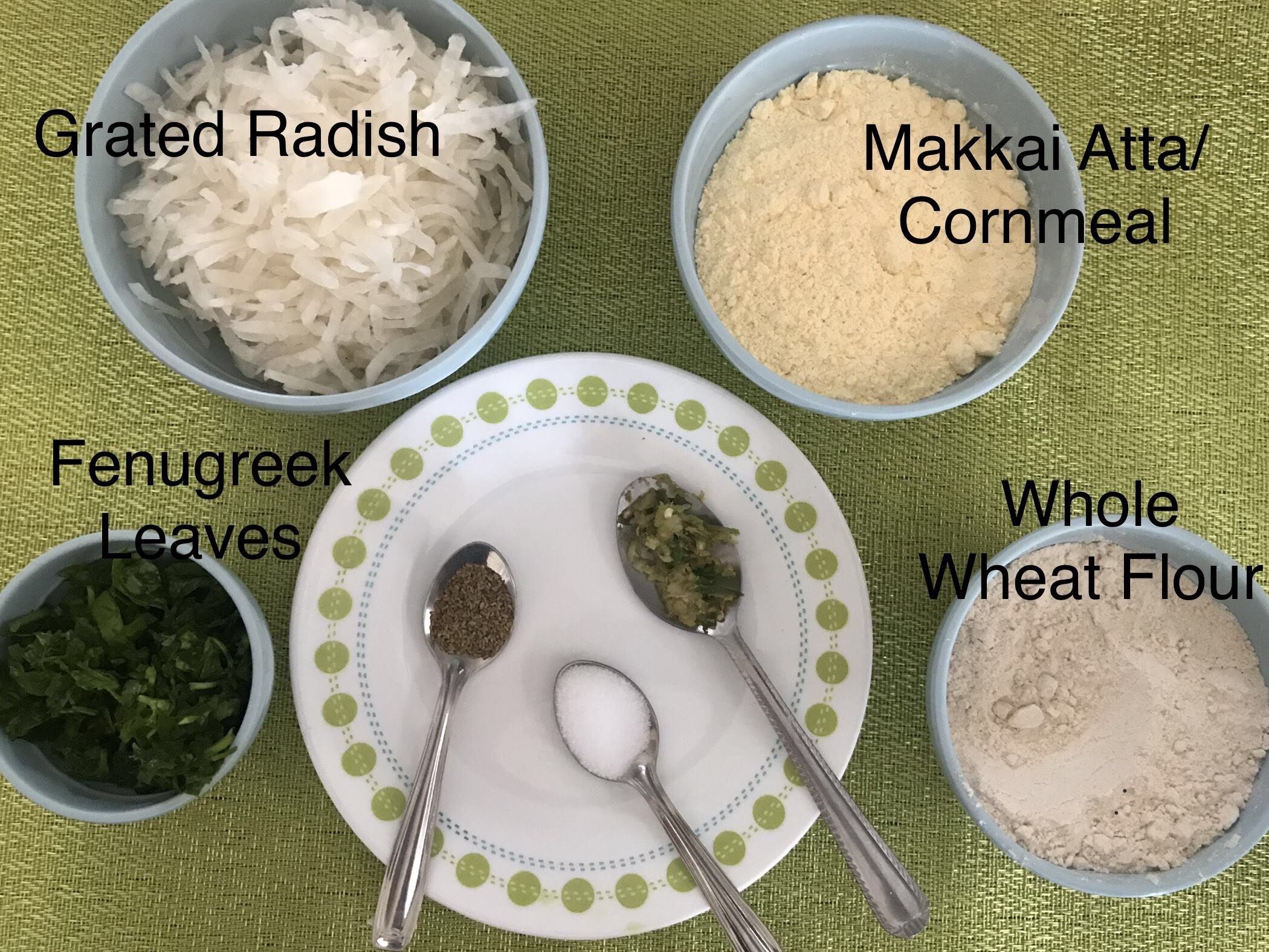 Makkai Methi Mooli Parantha recipe | Winter special Cornmeal flatbread recipe, with Diakon Radish and fresh Fenugreek Leaves