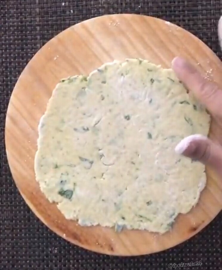 - Divide dough into equal portions and roll out carefully into circular disc.