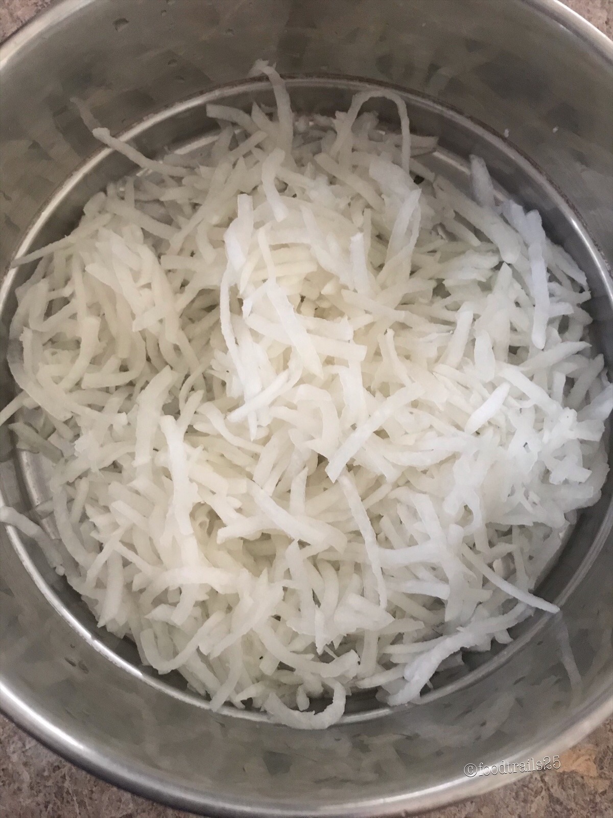 Grated radish and finely chopped fenugreek, leave water when mixed with salt and spices. So, another thing to keep in mind is to squeeze the water properly from grated radish.