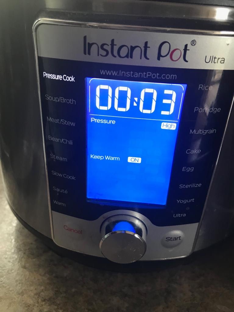 - Cancel the SAUTE Mode, close the lid and set the PRESSURE COOK mode on for 3 mins on HIGH.