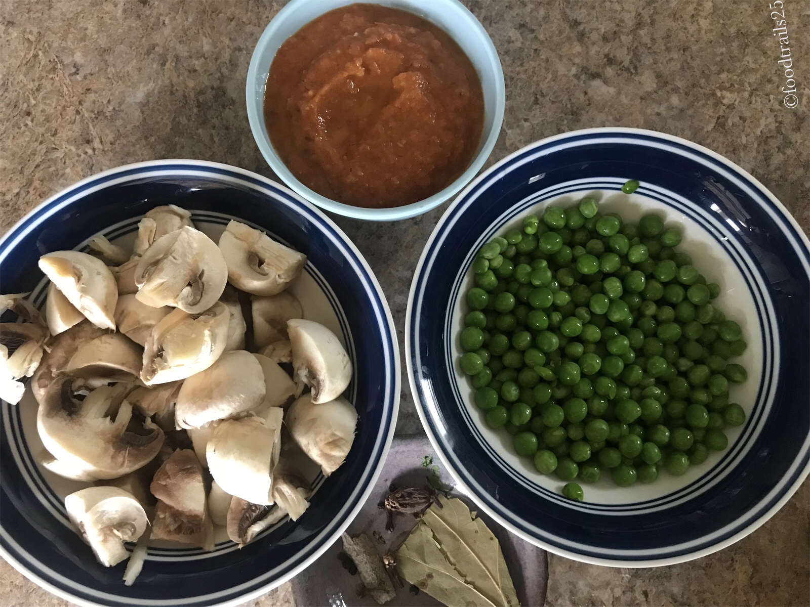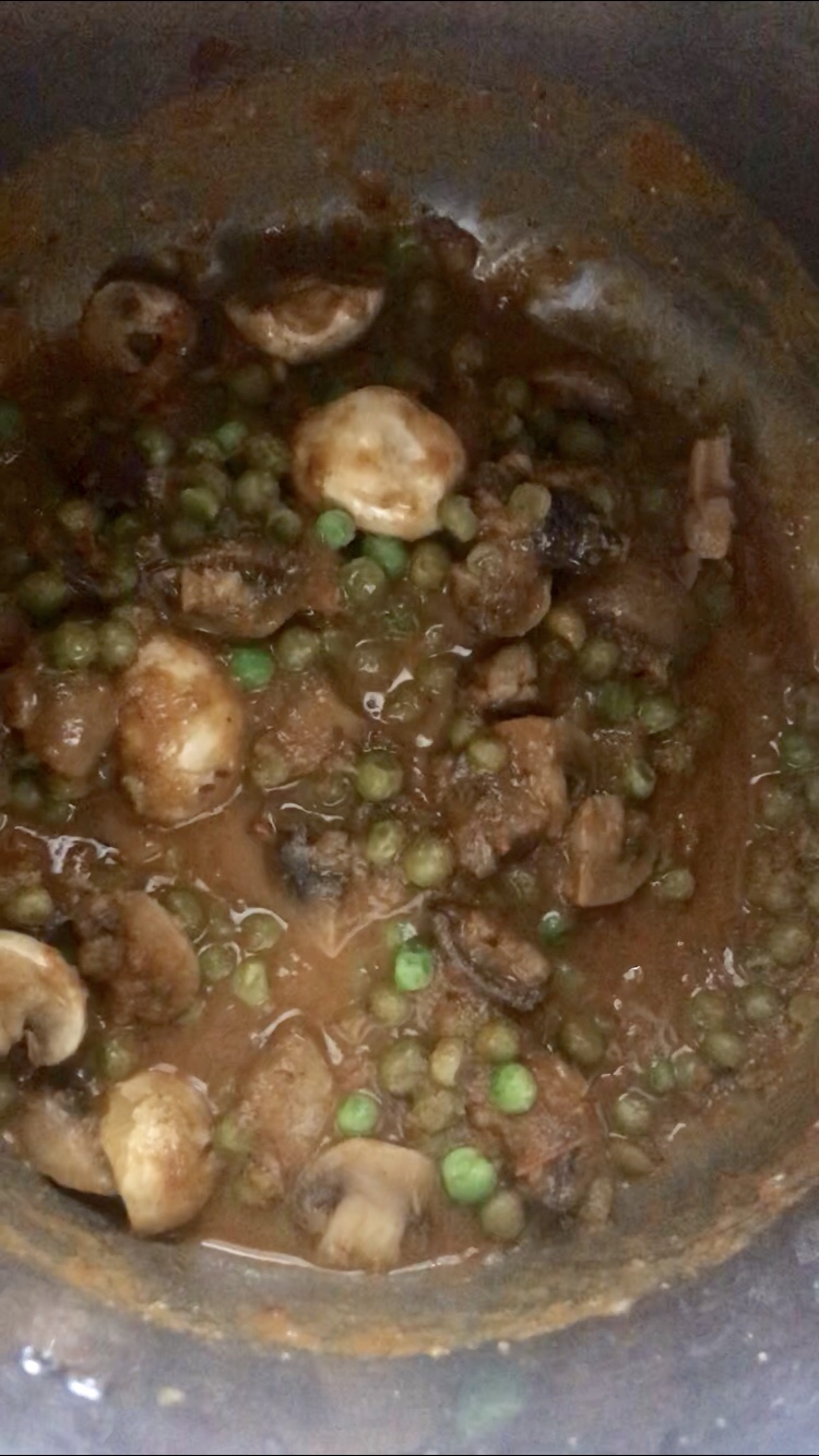 Button Mushroom, Fresh/Frozen Peas and Bhuna Masala.