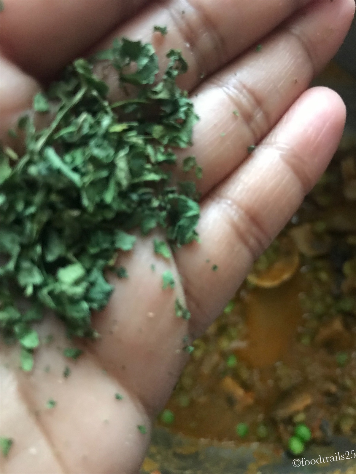 Matar Mushroom Masala is a North Indian dish that tastes best with fresh seasonal green peas, but you can make it with frozen peas also, as the fresh ones are not available throughout the year. A curry without butter or cream and yet so delcious rich and creamy!!