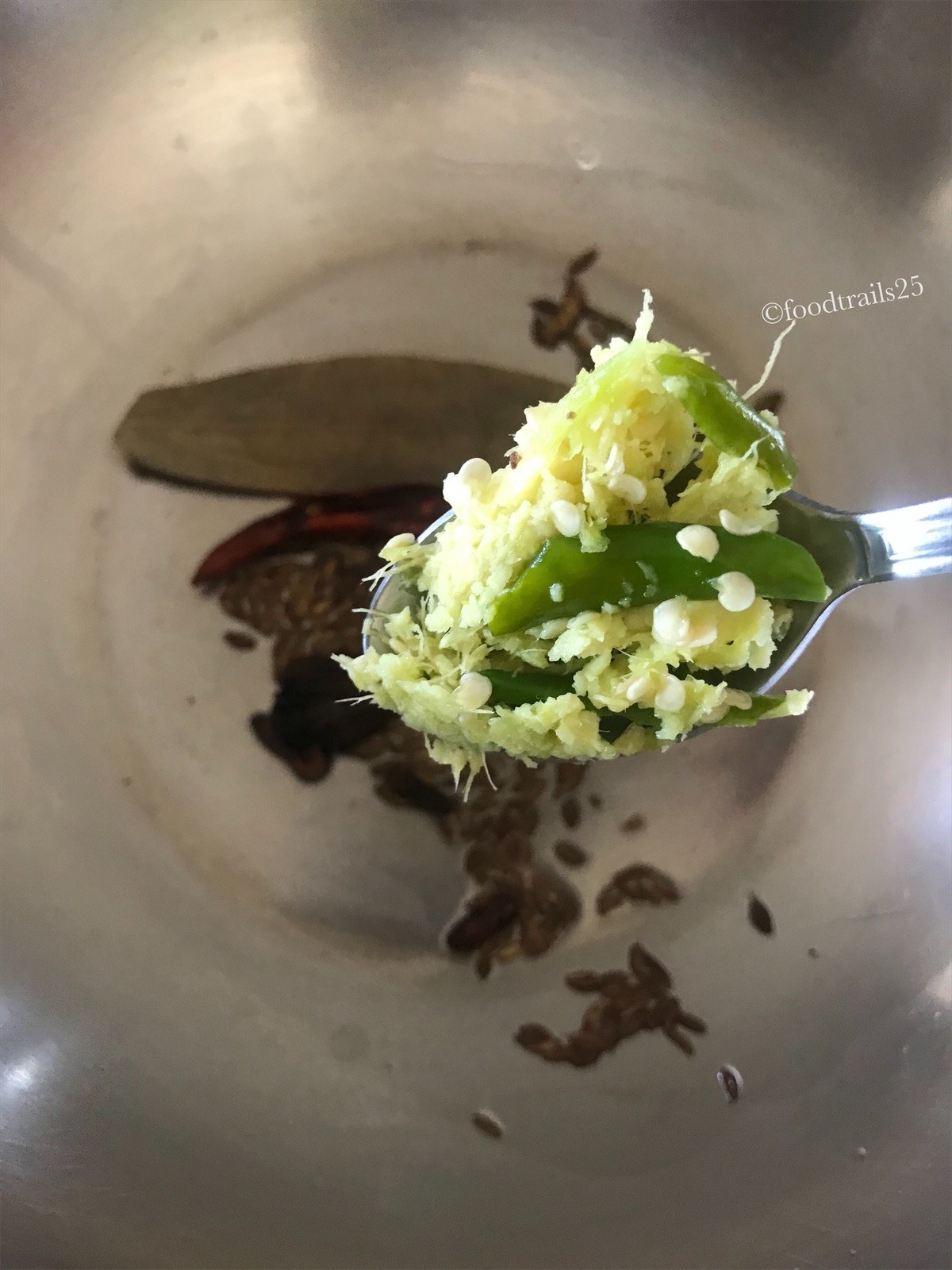 - Crush Ginger and green chilli in motor pestle or finely chop.