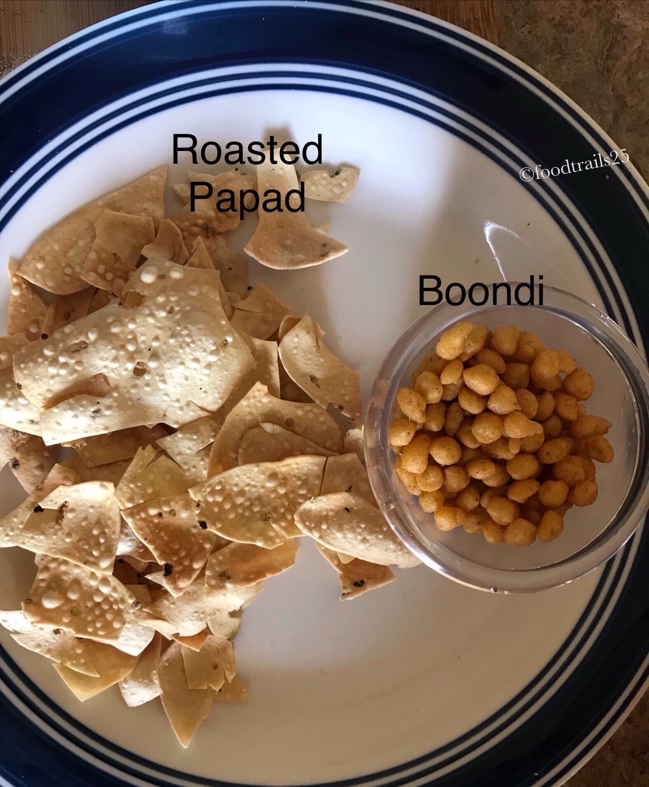 - Top with finely chopped cilantro/coriander(optional). Top it more crushed papads and boondi while serving for the crunch if you like.