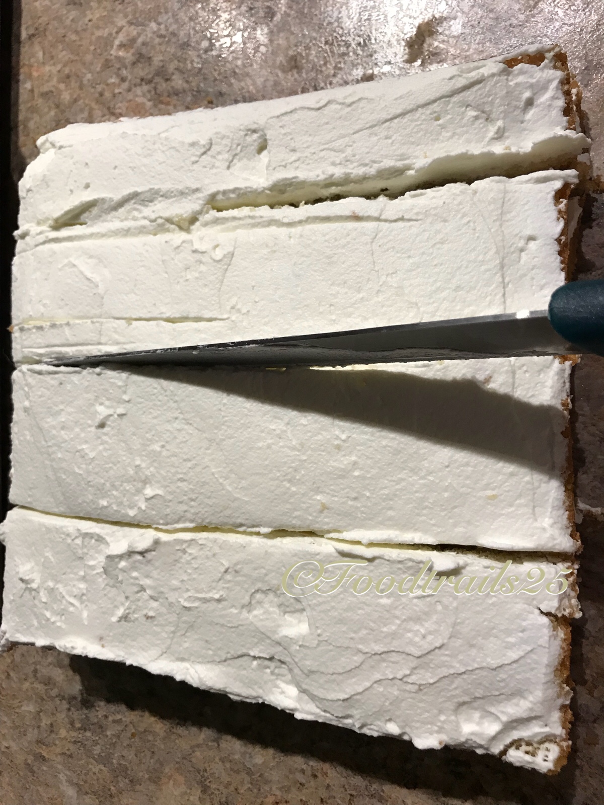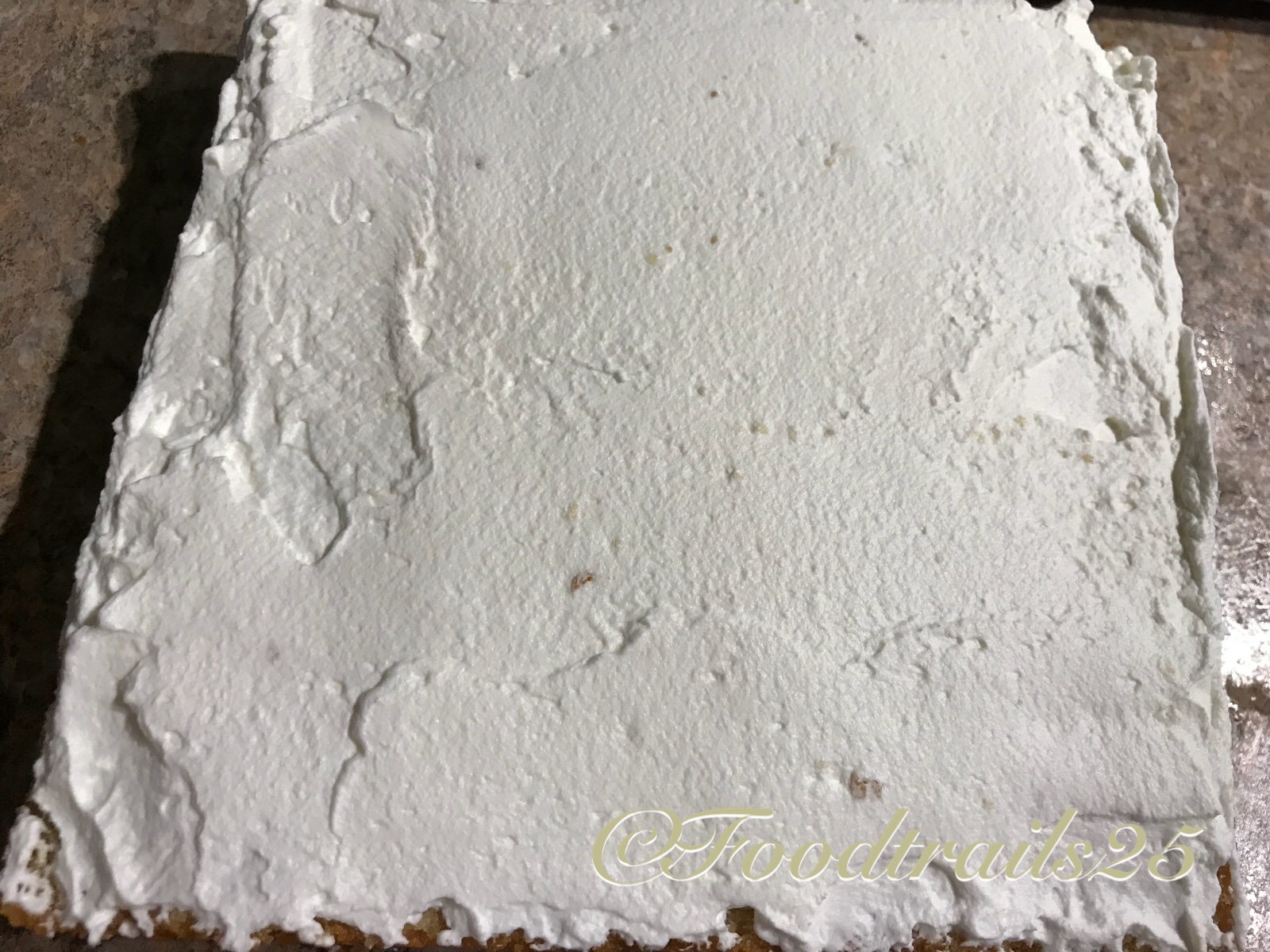 - Spread cream evenly on top and smoothen it, with the help of a spatula.