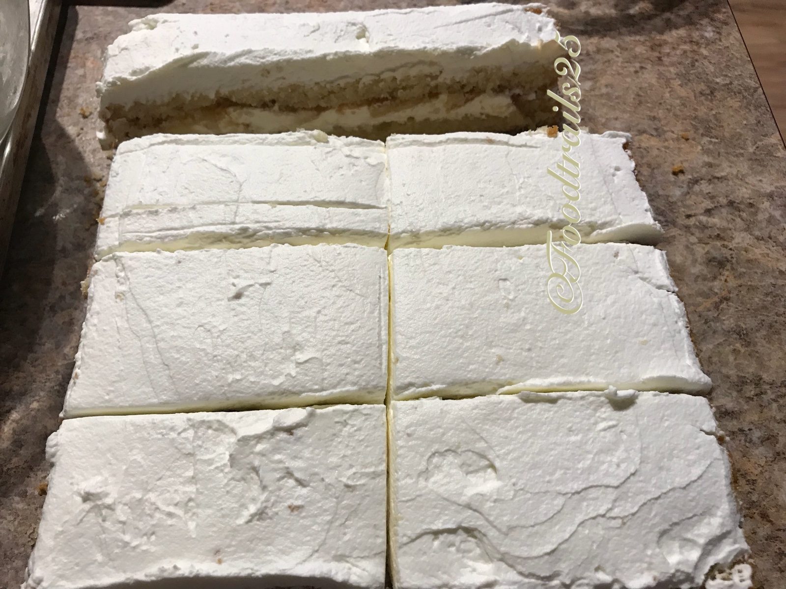 - Carefully cut the cake into desired pieces of pastry. Use a sharp knife.