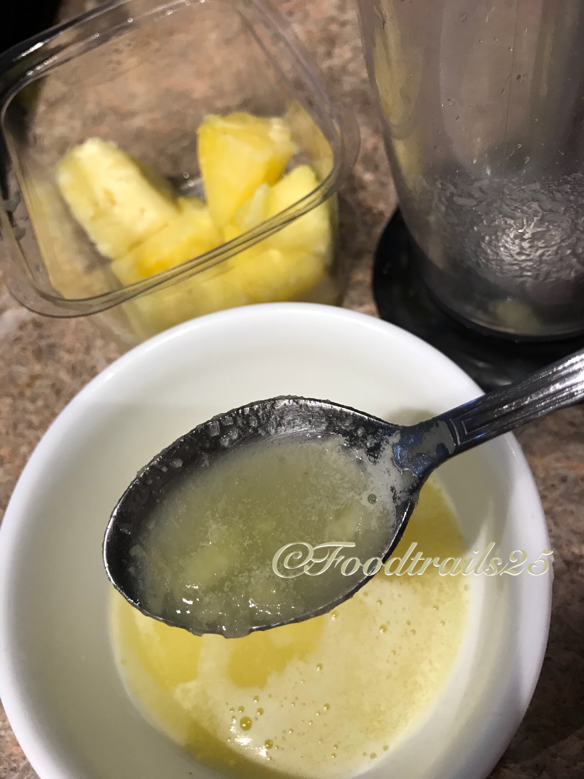 - In case you don't have pineapple juice, make sugar syrup by boiling 1/2 cup sugar with 1/2 cup of water.